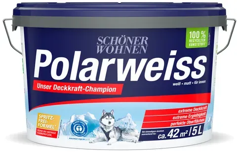 lieferbar-in 2-3 Werktagen bei dirSchöner Wohnen SCHöNER WOHNEN FARBE Wand- und Deckenfarbe Polarweiss 5 Liter (274035), hoher Weißheitsgrad, Spritz-Frei, Lösemittelfrei weiß