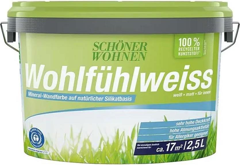 Zustand: Neu - 18,99 € / l - Wandfarben - Schöner Wohnen - Wohlfühlweiss 1l - EAN: 4006559384239 - Mineral-Wandfarbe WohlfühlWeiss matt - für Allergiker geeignet - Verkäufer: Schenken-und-Wohnen im amazon.de Marketplace ![]() ![]() Mineral-Wandfarbe WohlfühlWeiss - matt - eBay für Allergiker geeignet - 1,0 l