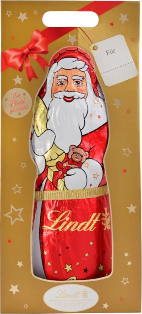 Süßwaren Sanitäter - EAN:4013900508831 - RIEGELEIN Weihnachtsmann Schokolade - festlicher Genuss in XXLEin echter Hingucker unter dem Weihnachtsbaum! Überraschen Sie Familie, Freunde oder Kollegen mit dem RIEGELEIN Weihnachtsmann Schokolade mit 525 g. Mit seiner imposanten Größe und der liebevoll gestalteten Verpackung ist er nicht nur ein köstliches Highlight, sondern auch ein dekoratives Symbol der Weihnachtszeit.Feinste Edel-Vollmilchschokolade für echte GenießerGefertigt aus hochwertiger Edel-Vollmilchschokolade mit mindestens 33% Kakaoanteil überzeugt der RIEGELEIN Weihnachtsmann durch seinen zarten Schmelz und den unvergleichlich süßen Geschmack. Jeder Bissen entführt Sie in eine Welt aus cremigem Genuss und weihnachtlicher Stimmung.Das perfekte Geschenk für Groß und Klein Ob als festliche Überraschung, als Highlight auf der Weihnachtstafel oder als Geschenkidee - dieser Schokoladen-Weihnachtsmann begeistert Jung und Alt gleichermaßen. Ein Präsent, das Freude schenkt und lange in Erinnerung bleibt. Tradition und Qualität seit GenerationenDie Marke RIEGELEIN steht für handwerkliche Tradition und höchste Schokoladenqualität. Mit diesem Weihnachtsmann vertrauen Sie auf einen Hersteller, der seit Jahren Schokoladenspezialitäten mit Herzblut und Erfahrung kreiert. - gefunden von Kelkoo Der Lindt Mini Santa Weihnachtsmann in der 200g Packung ist eine beliebte Wahl für Lindt-Qualität. ![]() ![]() Lindt Mini Santa Weihnachtsmann Vollmilch-Schokolade Packung 200g