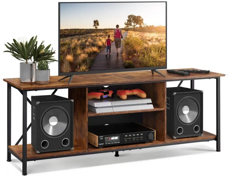 ![]() ![]() WLIVE TV-Schrank Lowboard 140 cm, Fernsehtisch bis 65 Zoll, (Industrie Design mit Ablagen & Kabelmanagement, Holzoptik & Metall, 1er Set) Breite 140 cm, TV Board für Wohnzimmer, Schlafzimmer braun