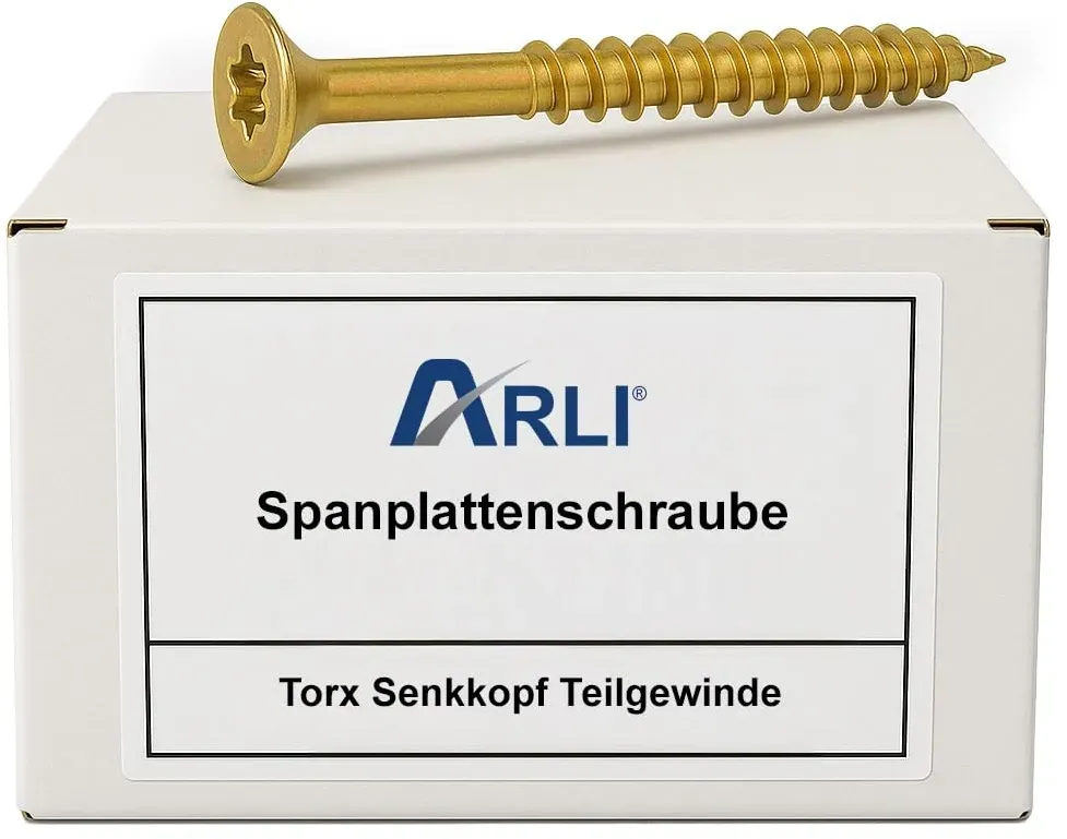 Zustand: Neu - Spanplattenschrauben - Lun Fix - KMWHT-05100-LF - EAN: 5904433770576 - GRUNDINFORMATIONEN: Sie erhalten 100 Stück Spanplattenschrauben , Schrauben-Größe: 5,0 X 100 mm, TX25, Kopfform: Senkkopf. Material: Stahl, Gelb verzinkt mit Gleitbeschichtung (reduziert Einschraubwiderstand). Sie erhalten ausschließlich erstklassige Profiqualität. PRODUKTBESCHREIBUNG: Unsere Spanplattenschrauben sind aus gelb verzinktem Stahl gefertigt, was sie besonders widerstandsfähig gegen Korrosion macht. Mit einem selbstschneidenden Gewinde ausgestattet, ermöglichen sie eine effiziente und stabile Verbindung. Sie sind ideal für eine breite Palette von Holzbearbeitungs- und Heimwerkerprojekten geeignet, darunter Schrank- und Möbelbau, Verarbeitung von MDF, Anbringen von Dachlatten, Spanplatten und weichen Kunststoffen. HOHE QUALITÄT: Unsere Holzschrauben bestehen aus Stahl und sind gelb verzinkt, wodurch sie eine ausgezeichnete Korrosionsbeständigkeit aufweisen. Die spezielle Gleitbeschichtung reduziert den Einschraubwiderstand und ermöglicht ein müheloses Eindringen ins Holz. Sie erhalten ausschließlich erstklassige Profiqualität. FRÄSSPITZE / SCHNEIDKERBEN: Die einzigartige Form unserer Frässpitze reduziert den Einschraubwiderstand um 15 %. Die Schneidkerben entlang des Gewindes schneiden mühelos durch die Fasern der Holzmaserung während des Einschraubens. ANWENDUNG: Unsere Spanplattenschrauben zählen zu den am häufigsten genutzten Schrauben und werden aufgrund ihrer ... Die ARLI Spanplattenschrauben bieten eine gute Menge von 200 Stück zu einem attraktiven Preis und sind gelb verzinkt für erhöhten Korrosionsschutz. ![]() ![]() ARLI 200x Spanplattenschrauben 5 x 100 mm | Torx TX25 | Senkkopf | Teilgewinde | gelb verzinkt Schrauben | Holzschrauben aus Stahl für Holz, Bau & Montage