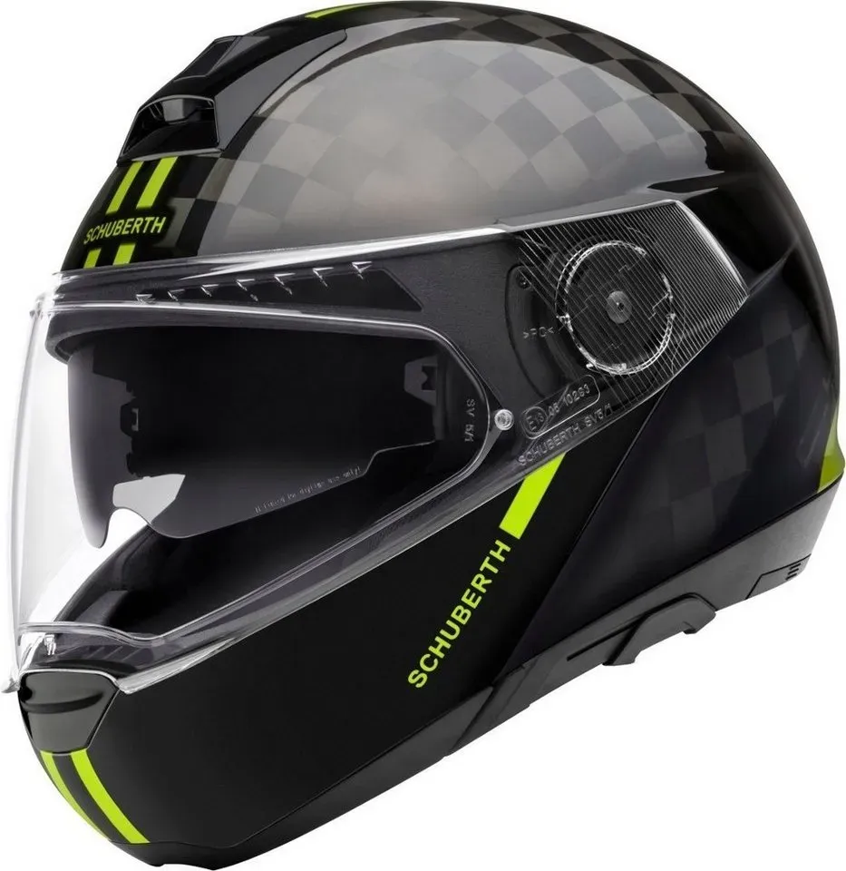 lieferbar-in 3-4 Werktagen bei dirSchuberth Motorradhelm C4 Pro Carbon Fusion Klapphelm, reflektierende, Pinlock, Klapphelm, Ratschenverschluss, Antibeschlag gelb XS (53)