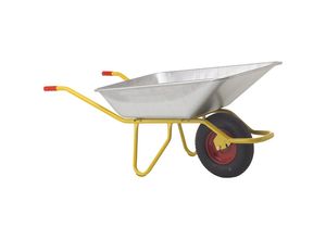 Heimwerken Wohnen Haus Garten - - Schubkarre BU 1400 SX, Luftreifen, Kugellager, LxB 1420 x 715 mm, gelb, silber. Anlieferung = montiert. Fassungsvermögen = 140 Liter. Material = Stahl. Farbe = gelb, silber. Radausführung = Luftreifen. Radlagerung = Kugellager. Tragfähigkeit = 250 kg. Höhe = 640 mm. Länge = 1420 mm. Breite = 715 mm. Radbreite = 100 mm. Raddurchmesser = 406,4 mm. Gewicht = 21.8 kg. Produkttyp = Schubkarren. Zolltarifnummer = 87168000. Herkunftsland = DNK. Bruttogewicht = 43.6 kg. Gewicht = 21.8 kg. Lange Haltbarkeit und Rostbeständigkeit durch verzinkten Stahl. . Einfache Handhabung. Die Schubkarre BU 1400 SX ist eine robuste Schubkarre, die für den intensiven Einsatz konstruiert wurde. Sie verfügt über eine langlebige, verzinkte Wanne mit einem Fassungsvermögen von 110 Litern, die auch schweren Lasten und häufigem Gebrauch standhält. Die Rahmenkonstruktion aus europäischem Stahl verfügt über eine hohe Festigkeit und Langlebigkeit, was auch die des Herstellers unterstreichen. Die witterungsbeständige UV-Lackierung in einem auffälligen gelben Farbton erhöht die Sichtbarkeit. Die Schubkarre ist mit roten Gummigriffen ausgestattet, die einen festen und bequemen Griff gewährleisten. Die Mobilität der Schubkarre wird durch ein starkes Rad mit roter Stahlfelge und Luftbereifung gewährleistet, das auch auf unwegsamem Gelände gute Fahrbedingungen bietet. Diese Schubkarre ist für Profis in der Branche, die ein zuverlässiges Werkzeug für größere Arbeiten ... Eine solide Einsteiger-Schubkarre von MATADOR mit robustem Ovalrohrrahmen und 4-lagigem Luftreifen. ![]() MATADOR Schubkarre Einsteiger, mit Ovalrohrrahmen, Luftreifen 4-lagig