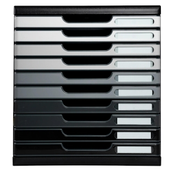 Der angezeigte Preis könnte seit dem letzten Update gestiegen sein - EAN: 4002432115488 - Zweifarbiger WOW-Effekt in Hochglanz-Qualität. B x H x T: 287 x 270 x 363 mm Für DIN A4-Formate, stapelbar Mit Griffmulde, Auszugsperre Je 2 hohe und flache Schubfächer Material: Polystyrol Gehäuse: perlweiß / farbig oder schwarz/ grau Lieferung... - Zustand: NEW - bei Metro.de - gefunden von Buycentral Diese Exacompta Schubladenbox bietet mit 10 geschlossenen Laden viel Stauraum und ist eine robuste Wahl für das Büro. ![]() Exacompta 302794D 1x Schubladenbox MODULO A4, 10 geschlossene Laden - Grau