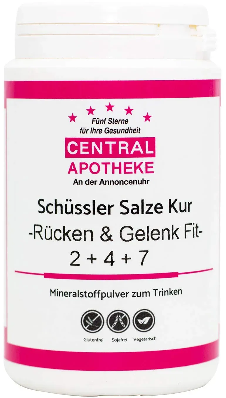 Zustand: Neu - 88,67 € / kg - Multivitamin & Mineralien Multivitaminpräparate & Mineralien - Casida Central-Apotheke - AB1222245678932243523524 - EAN: 7426822733170 - Bewährte Schüssler Salz Mischung 2 + 4 + 7 - Rücken & Gelenk Fit Gezielte Unterstützung bei Prävention und Regeneration von Rücken - und Gelenkbeschwerden Original Schüssler Salze als Mischung 2 x täglich einen halben Messlöffel in 150ml Wasser lösen und in kleinen Schlucken trinken. Mit praktischen Messlöffel - Verkäufer: myapo-de im amazon.de Marketplace ![]() ![]() Schüssler Salze Kur 4 + 9 + 10 - FigurFit - Schüssler Salze Set, 225 g