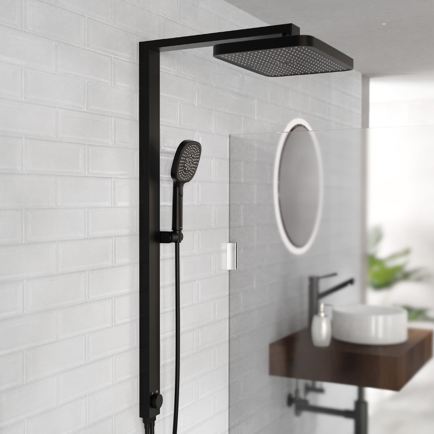 Auf Lager Versand durch AmazonSCHÜTTE 60686 LA PALMA Duschsystem mit Regendusche und Duschsäule, 36x24 cm Edelstahl Duschkopf, Duschset ohne Duscharmatur, Duschstange mit Hand- und Kopfbrause, Schwarz
