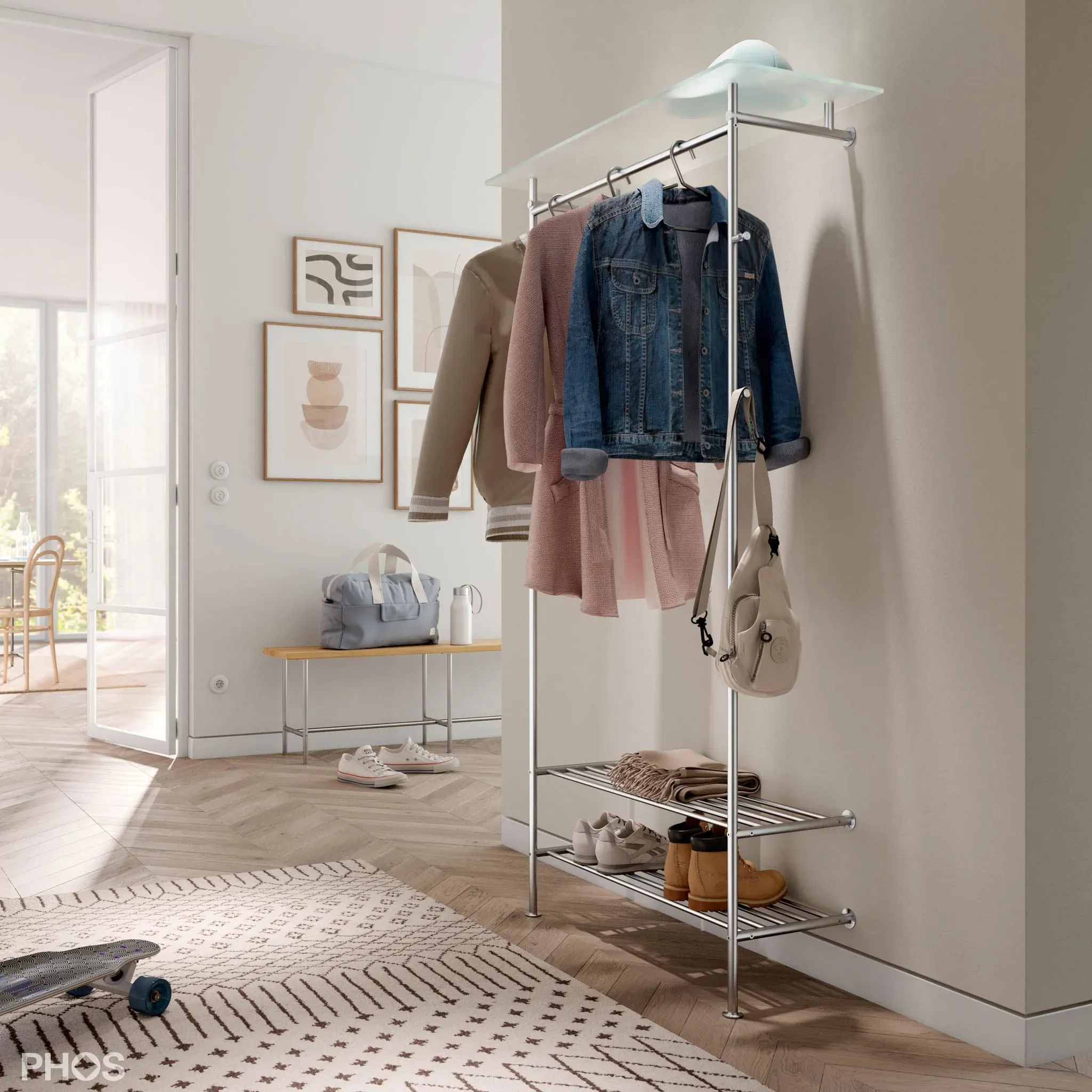 Kategorie: Dielenmöbel - PHOS Edelstahl Design - GTIN:4250519730257 - Form Schuhbank mit einer Sitzfläche aus massivem Eichenholz. Die Regale aus massivem Edelstahl sind höhenverstellbar. Es finden bis zu 6 Paar Schuhe Platz. Breite 65 cm, Höhe 50 cm, Tiefe 31,6 cm. Materialien Wertvoll vom Design, der Optik und dem Material: Alle Stangenelemente der Schuhablage bestehen aus massivem Edelstahl (V2A nach DIN) und sind matt geschliffen. Die Sitzfläche besteht aus massivem Eichen-Leimholz. Die Konstruktion wird durch die feste Verschraubung sehr stabil. Design Die hochwertige Schuhablage ist ein echter Hingucker und passt zu jedem Einrichtungsstil. Die präzise Herstellungsqualität und die klare Form sachlicher Funktionalität zeichnen PHOS Produkte aus. Die edle Schuhbank eignet sich für jeden Flur als Schuhregal mit Sitzgelegenheit beim Schuhe an- und ausziehen. PHOS Custom Möchten Sie ein breiteres Schuhregal? Oder eine höhere Schuhbank mit mehr Ebenen? Als Hersteller können wir auf viele Ihrer Wünsche & Vorstellungen eingehen. Rufen Sie uns an, wir beraten Sie gerne. über PHOS PHOS Design ist eine Manufaktur mit Sitz und Produktionsstätte in Karlsruhe. Auf alle Artikel geben wir 1 Hersteller . Auszug aus unseren Referenzen: Deutscher Bundestag Bundesverfassungsgericht Karlsruhe Berliner Schloss PHOS Shop Mehr Infos, weitere Maße und persönliche Beratung bei PHOS direkt. - 590,00 Euro bei Amazon Marketplace Home - gefunden von billiger.de Eine komplette Flurgarderobe mit Schuhregal und Glasablage aus massivem, matt gebürstetem Edelstahl, die ein luxuriöses Gesamtpaket darstellt. ![]() ![]() PHOS Edelstahl Design Flurgarderobe mit Schuhregal und Glasablage, Edelstahl massiv, matt gebürstet, sichere Verschraubung, Gesamtbreite 80 cm, Höhe 180 cm, Ausladung 37,5 cm - PHOS Design
