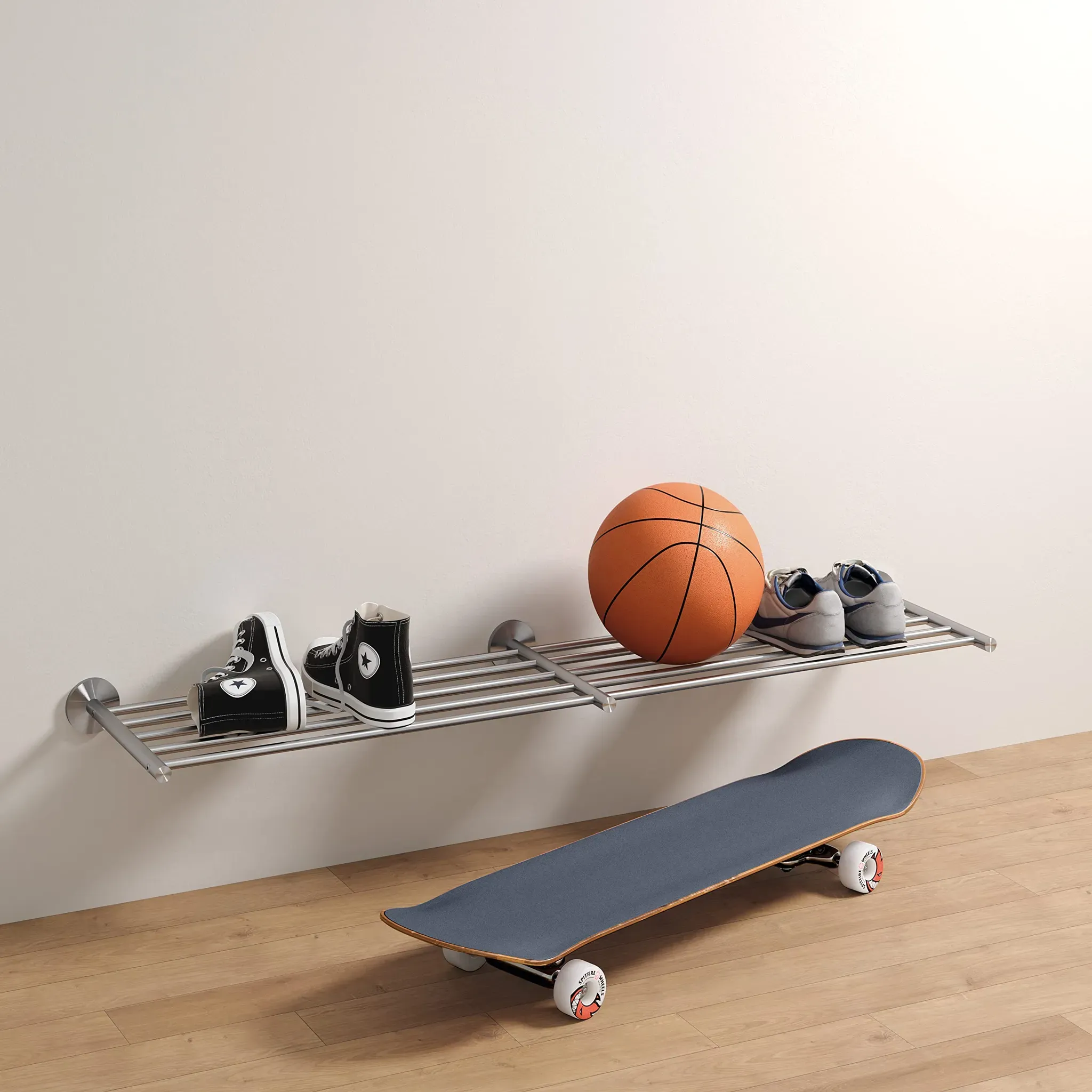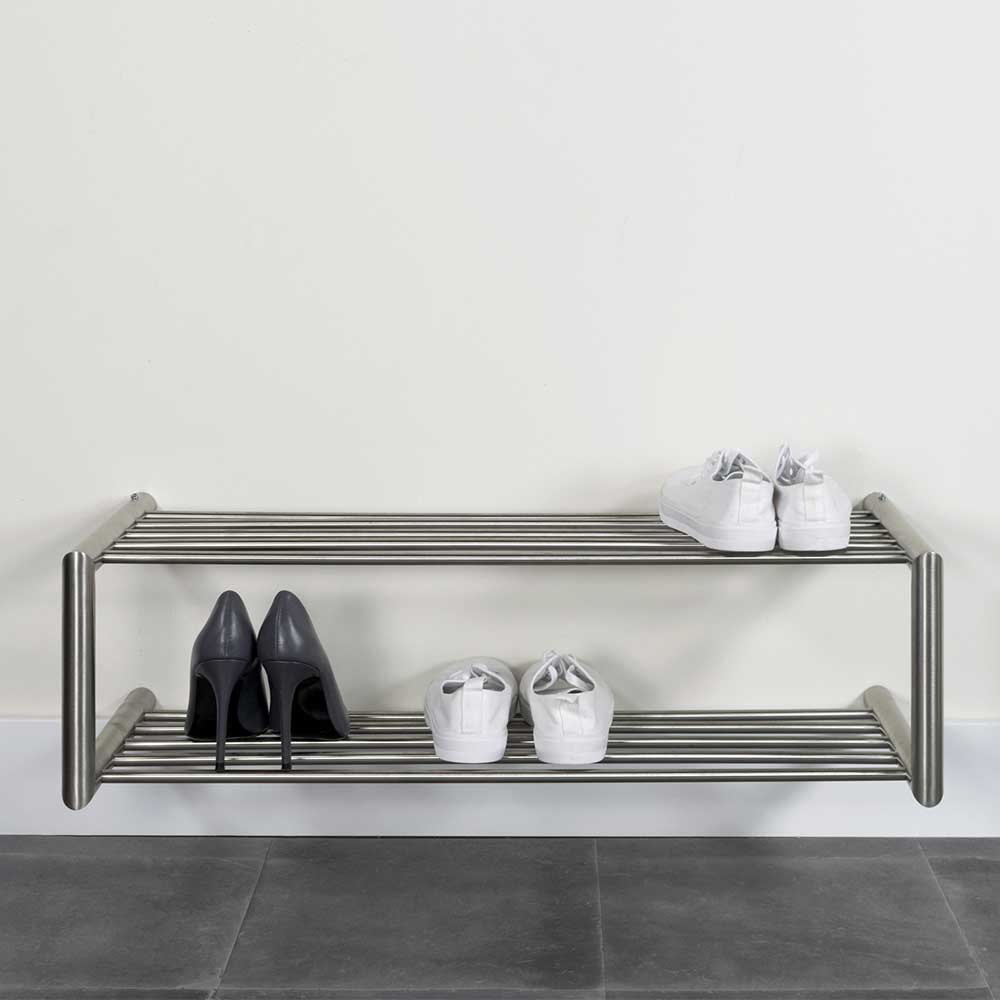 Gewöhnlich versandfertig in 2 bis 3 TagenPHOS Edelstahl Design Schuhregal Wandmontage, gebürsteter Edelstahl, 120 cm breit, gebürsteter Edelstahl - PHOS Design