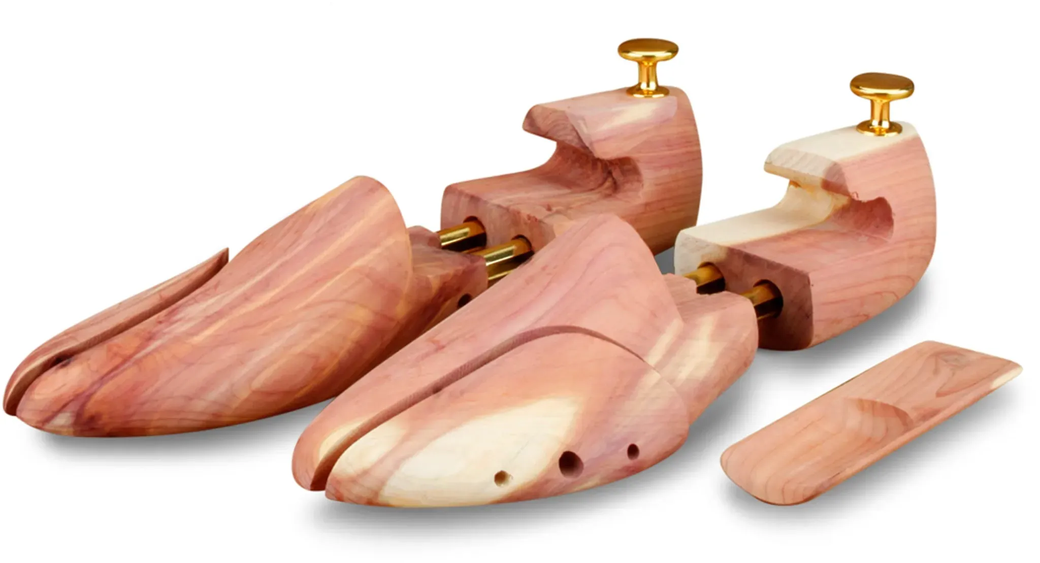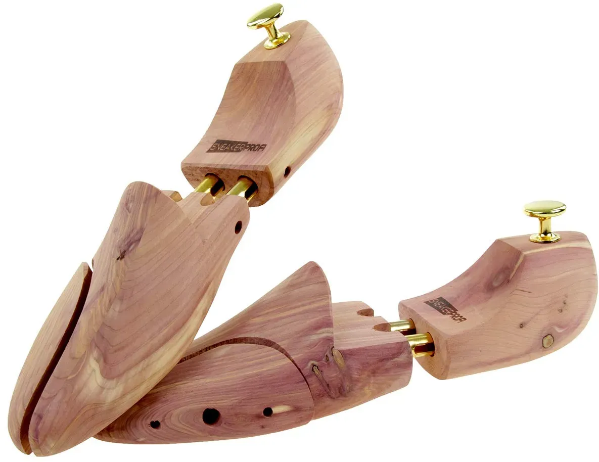 Kategorie: Zubehör für Schuhe - Sneakerprofi - 1 Paar exklusive Schuhleisten aus dem Holz der Red Cedar (Juniperus Virginiana). Die doppelte Teleskopfeder gewährleistet eine optimale Spannung, das geteilte Vorderblatt eine optimale Passform. Das Holz ist vollkommen naturbelassen, nur geschliffen und poliert. Dadurch kann der Schuhleisten Ihren Schuh optimal trocknen. Die ätherischen öle der Red Cedar bestechen zudem noch durch einen angenehmen Duft und desodorieren Ihren Schuh auf natürliche Weise. Hochwertiger Schuhspanner von Sneakerprofi mit praktischer Doppelfeder: Gehfalten werden nachhaltig geglättet und geben dem Schuh bis zum nächsten Einsatz seine ursprüngliche Form - naturbelassene Spannleiste. Das von uns eingesetzte Holz der Red Cedar stammt ausschließlich aus Wiederaufforstungen im Nordosten der USA und Kanadas und ist daher unbedenklich. Mit dem Griffknopf am Fersenteil ist zudem ein einfaches Ein- und Ausleisten gewährleistet. - 28,99 Euro bei Amazon Marketplace Shoes - gefunden von billiger.de Ein Premium-Schuhspanner aus edlem Zedernholz von Schlesinger, der sich gut für Herrenschuhe und Sneaker eignet. ![]() ![]() Schlesinger - Premium Schuhspanner aus edlem Zedernholz für Herrenschuhe und Sneaker. Modell König. Größe 41/42. Gold Knauf. - 41-42