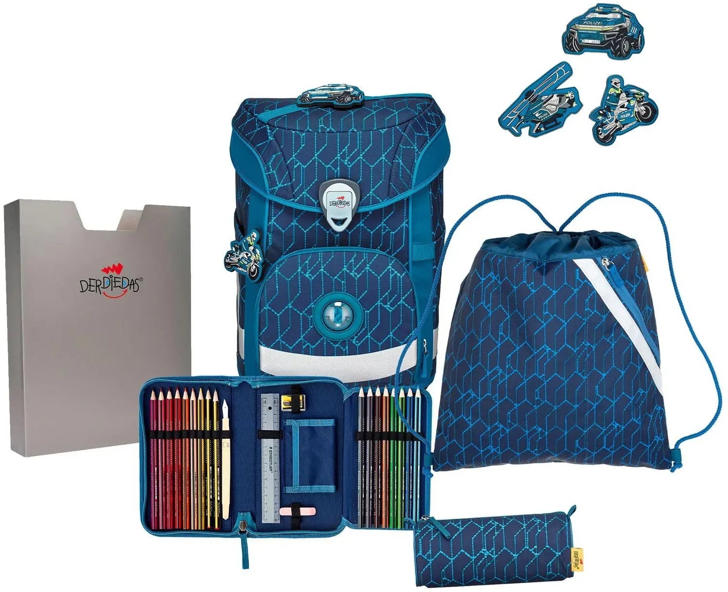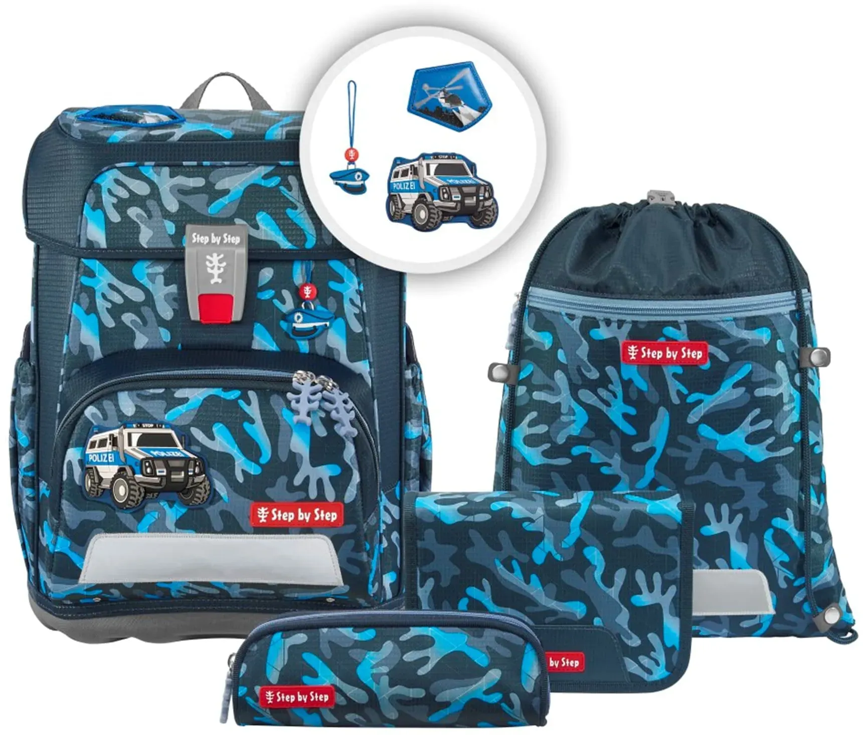 11 Händlerangebote bei billiger.de - Kategorie: Schulranzen - DerDieDas - Der DerDieDas Schulranzen ist die ideale Wahl für Ihren Schulanfänger! Die ergonomische und gepolsterte Rückseite des Schulranzens ist besonders komfortabel und die atmungsaktiven Gurte verstärken das noch mehr. Die farblich-passenden Set-Teile kreiert einen prima Schulanfang. Maße: 27 x 40 x 18 cm - GTIN:4006047891546 Das Step by Step Schulranzen-Set Cloud Police Truck Diego ist ein ergonomischer Ranzen mit einem beliebten Motiv und guter Verstellbarkeit. ![]() ![]() Step by Step Schulranzen-Set Cloud Police Truck Diego 5-teilig, ergonomischer Tornister, höhenverstellbar mit Hüftgurt, für die Grundschule, ab der 1. Klasse, 19L, blau, Polizei-Design