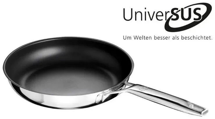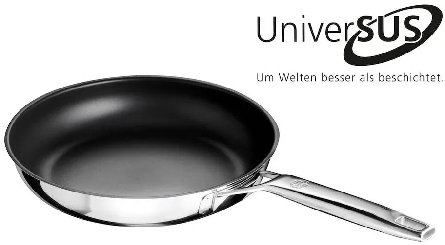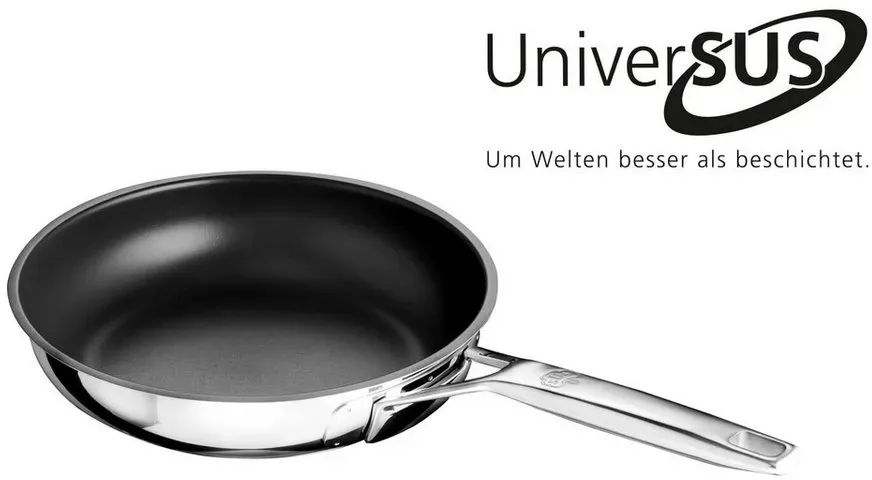 Zustand: Neu - Brat- & Universalpfannen - Schulte-Ufer - 64456-24 - EAN: 4007257631359 - Um Welten besser als beschichtet durch UniverSUS. Diese extrem harte Oberflächenstruktur für Pfannen ist frei von PFAS und PTFE und bietet einen natürlichen Antihaft-Effekt. UniverSUS erlaubt hohe Temperaturen für scharfes Anbraten und sorgt für krosseste Bratergebnisse. KROSSER: perfekt für Bratkartoffeln und Steaks. Die UniverSUS Oberflächenstruktur sorgt für eine spürbar bessere Wärmeleitung und erlaubt höchste Temperaturen für scharfes, intensives Anbraten. HÄRTER: selbst Metallwender sind möglich. Der UniverSUS Oberflächenstruktur macht selbst der Einsatz von Metallwendern nichts aus. Kratzer, die normale Beschichtungen unbrauchbar machen, sind bei UniverSUS nur optischer Natur. NATÜRLICHER: nachhaltiger Antihaft-Effekt ohne PFAS / PTFE. Die UniverSUS Oberflächenstruktur bietet einen aktivierbaren Antihaft-Effekt, der sich durch die Zugabe von Speiseöl immer wieder erneuern lässt. Durch recycelten Edelstahl 18/10 sind die Astral Pfannen widerstandsfähig und besonders nachhaltig. Die UniverSUS-Oberfläche erlaubt die bequeme Reinigung in der Spülmaschine. Der energiesparende ecotherm Allherd-Aluminium-Kapselboden ist geeignet für alle gängigen Herdarten, inkl. Induktion und Glaskeramik-Kochfelder. Seit 1886 bietet das deutsche Familienunternehmen Schulte-Ufer Töpfe, Pfannen und andere Küchenhelfer, die gleichermaßen praktisch, hochwertig und schön sind. - 8 Händler im amazon.de ... Diese 24 cm Pfanne von OTTO ist eine solide Wahl mit der UniverSUS-Oberflächenstruktur. ![]() ![]() SCHULTE-UFER Bratpfanne SUS Schulte-Ufer Bratpfanne Astral, Ø 24 cm mit UniverSUS