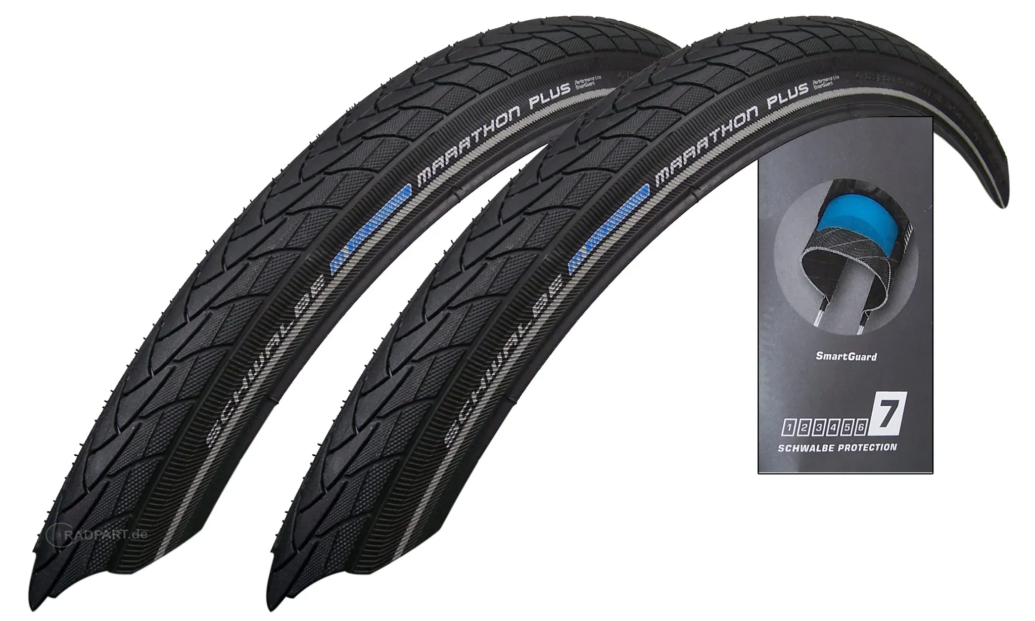 4 Händlerangebote bei billiger.de - Kategorie: Fahrradreifen & -schläuche - Schwalbe - Mit dem Marathon Winter haben Sie die volle Kontrolle über vereiste Straßen. Auch in engen Kurven und bei starkem Bremsen bleibt alles unter Kontrolle. Die Spikes funktionieren am besten auf Eis bei minimalem Druck, während die Reifen bei maximalem Druck auf eisfreien Straßen mit minimalem Straßengeräusch gefahren werden können.Eigenschaften:Schwalbe-Linie: Performance-LinieSchwalbe Haut: TwinSkinSchwalbe-Verbindung: WinterSchwalbe Pannenschutz: Green GuardReifentyp: DrahtreifenSpezifikationen:Maximaler Druck Bar: 5 barMaximaler Druck PSI: 70 psiEPI: 67Zoll Größe: 26 x 1,75Etrto Größe: 47 559 - GTIN:4026495849814 Dieses 2er-Set des Schwalbe Marathon Plus ist eine kostengünstige Option für zwei Reifen mit SmartGuard Pannenschutz. ![]() ![]() 2X Schwalbe Marathon Plus 47-559 Drahtreifen SmartGuard 26x1.75 Fahrradreifen