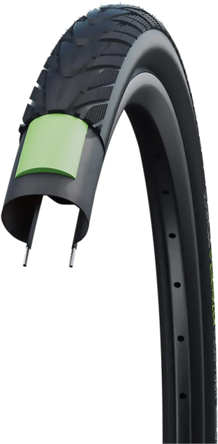 Gesamtsortiment Sport Bike Veloteile Veloräder + Veloschläuche Veloreifen Fahrradteile & Zubehör - EAN:4026495891189 - So lang der Akku hält. Ohne Ende Fahrvergnügen mit dem E-Touringspezialisten Energizer Plus Tour. Durch den 3 mm starken GreenGuard auf dem gleichen Sicherheitsniveau wie der Energizer Plus und mit einem überarbeiteten Trekking-Profil, welches sich zuvor bei Schwalbes Marathon GT Tour auf Jahre bewährt hat, ist der Energizer Plus Tour der ideale Begleiter für E-Touren auf oder abseits befestigter Radwege. Natürlich mit hochwertigem Aufbau (67 EPI-Karkasse), ADDIX E-Compound und ECE-R75 Zertifizierung für E-Bikes aller Klassen. Performance Line: Exzellente Qualität für den intensiven Einsatz. GreenGuard: Die Einlage aus hochelastischem Naturkautschuk ist 3 mm stark. Grün sind auch die inneren Werte. Zu einem Drittel wird der GreenGuard aus recycelten Latexprodukten gefertigt. Altprodukte aus Naturkautschuk (wie Handschuhe, Schläuche ...) werden zerkleinert und über mehrere Verfahrensschritte wieder als Grundmaterial in den Pannenschutzeinlagen eingesetzt. Energizer: Extrem griffiges Compound für E-Bikes. TwinSkin: Eine zusätzliche Gummierung auf der Seite schützt gegen Schnitte und ermöglicht eine gleichmässige Färbung. Addix E Compound: Die neue Gummimischung wurde gezielt für den Einsatz am E-Bike konzipiert. Sie bietet gleichzeitig ein Maximum an Haltbarkeit, niedrigen Rollwiderstand und aussergewöhnlichen Grip. Und das auch bei hohen Geschwindigkeiten! ... Dieser Reifen ist eine gute Mittelklasse-Option, die eine ausgewogene Leistung und Haltbarkeit bietet. ![]() ![]() Schwalbe Energizer Plus Reifen