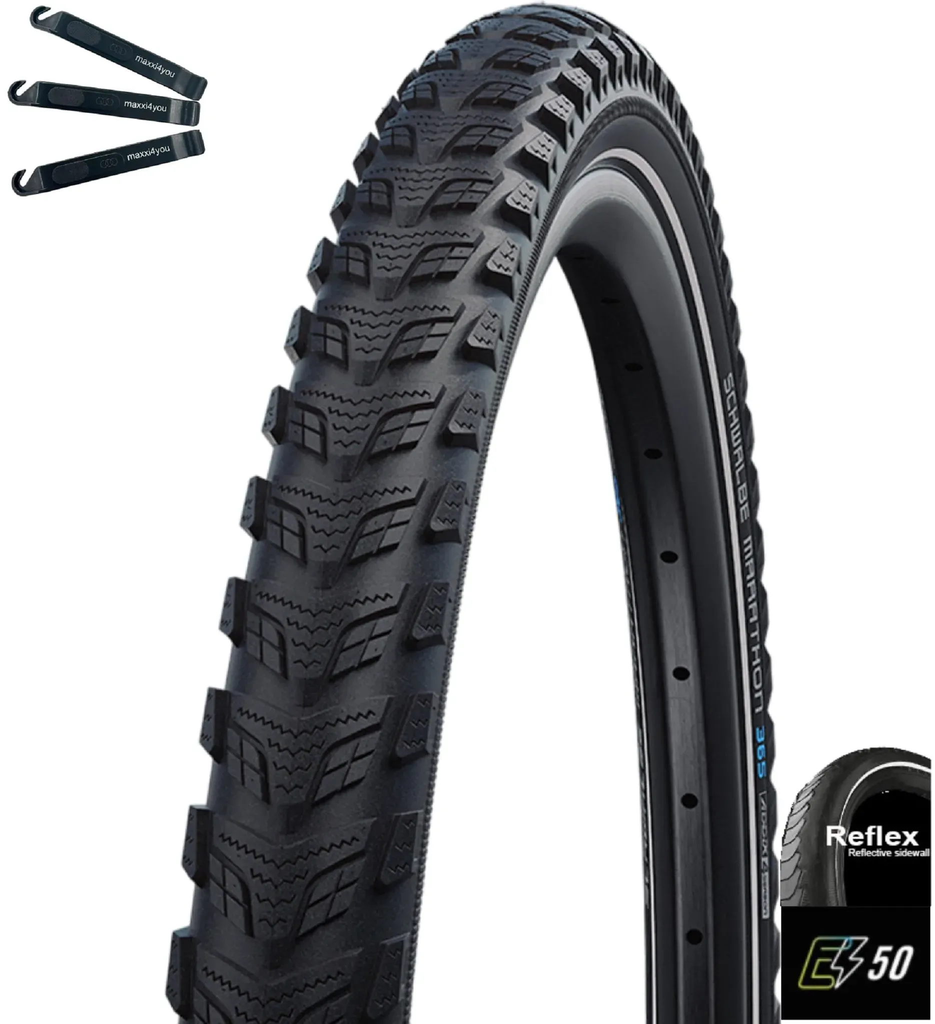? Beliebte Modelle im Vergleich| Modell | Besonderheiten | Preis (ca.) | Eignung | |--------|----------------|-------------|---------| | Schwalbe Marathon 365 | Ganzjahresreifen, GreenGuard, Addix 4Season, Reflexstreifen | 35-50?€ | Stadt, Touring, E-Bike | | Schwalbe Marathon GT 365 | MTB-Version, TwinSkin-Karkasse, DualGuard | 40-60?€ | MTB, Winter | | Schwalbe Marathon Almotion | Leichter, Tubeless-Option, ADDIX | 45-65?€ | E-Bike, City |