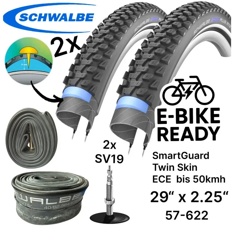Verfügbarkeit: lieferbar-in 6-7 Werktagen bei dir - 98.69/1Stk - Kategorie: Fahrradreifen & -schläuche - Schwalbe - GTIN:4255849708167 - Einsatzbereich , E-Bike 25, E-Bike 50, MTB, Ausstattung , Drahtreifen, Breite Reifen in Millimetern , 54 mm, Breite Reifen in Zoll , 2.1 ', Innendurchmesser Reifen , 622 mm, Größe Laufrad in Zoll , 29 Zoll ', - 98,69 Euro bei OTTO - gefunden von billiger.de Dieses Set ist eine umfassende Lösung für E-MTB-Fahrer, die zwei Reifen und Schläuche mit hohem Pannenschutz suchen. ![]() ![]() Schwalbe Fahrradschlauch 2x Schwalbe Marathon Plus MTB Ebike 29x2,25" Reifen Schläuche SV19 Set