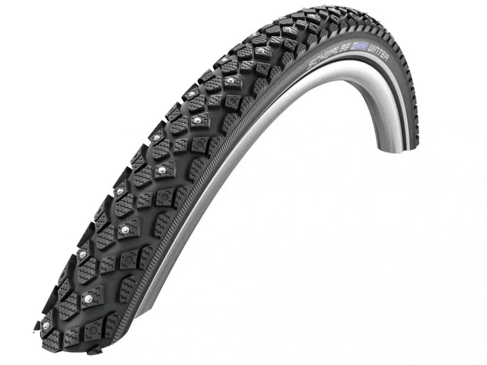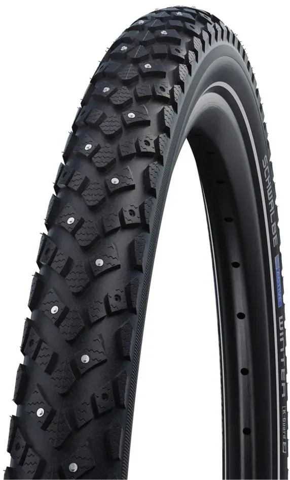 Verfügbarkeit: 2-4 Werktage - Kategorie: Fahrradreifen & -schläuche - Schwalbe - GTIN:4026495825948 - Reifen Schwalbe Winter. Reduziert auf das wesentliche (100 Spikes). Reduziert auf das Wesentliche. Auch mit der halben Menge an Spikes bietet der Winter exzellente Kontrolle auf glatten Eisflächen. Nur in extremen Kurvenlagen ist ihm sein großer Bruder Marathon Winter überlegen. Mit 50 EPI Karkasse, Reflexstreifen und K-Guard bietet er eine hervorragende Ausstattung zum Einstiegspreis.. Größe:. ETRTO 42-622 (28,0 x 1,60'). Typ:. Drahtreifen. Ausführung:. Active. Skin:. Twin. Compound:. Winter. Pannenschutz:. K-Guard. Druck:. 2,0 - 5,0 Bar (30 - 70 psi). Profil:. HS396. EPI:. 50. Farbe:. Schwarz, reflektierend. Gewicht:. 905 g (32 oz). Maximallast:. 90 kg - 33,55 Euro bei Fahrrad-Teile - gefunden von billiger.de Der Marathon Winter Plus bietet dank SmartGuard Pannenschutz und Spikes hervorragenden Grip und Sicherheit bei winterlichen Verhältnissen. ![]() ![]() Schwalbe MARATHON WINTER PLUS Perf, SmartGuard, TwinSkin 28" Drahtreifen Black-Reflex 42-622