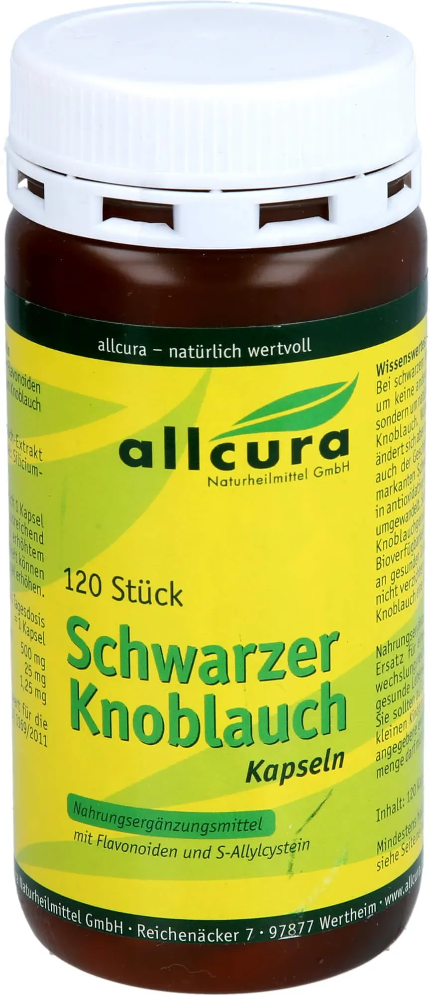5 Tage in_stock - 0.1 / 1 ct - Vitamine, Mineralien & Nahrungsergnzungsmittel Gesundes Herz Gesundheit und Wohlbefinden Herz und Blutkreislauf Vitamine & Ergnzungen - EAN:5056329502492 - Extrakt aus fermentiertem schwarzem Knoblauch im Verhltnis 10:1. Standardisiert auf 3 % Polyphenole. Mit Vitamin B1, B6, B12 und Folsure. Fr Veganer geeignet.. Darreichungsform: Pflanzliche Kapseln. Geschmack: . Menge: . Portionen: 120. Verwendung: 2 Mal tglich 1 pflanzliche Kapsel einnehmen. Zutaten: Fermentierter Schwarzer Knoblauch Extrakt (10:1, aus Zwiebeln und Stngeln von Allium sativum L., 3 % Polyphenole), pflanzliche Kapsel [berzugsmittel (Hydroxypropylmethylcellulose)], Maisstrke, Trennmittel (Magnesiumsalze der Speisefettsuren, Calciumsilicat), Maltodextrin, Thiaminhydrochlorid (Vitamin B1), Pyridoxinhydrochlorid (Vitamin B6), Folsure, Methylcobalamin (Vitamin B12).. Allergeninformationen: Eifrei,Fr Veganer geeignet,Fr Vegetarier geeignet,Glutenfrei,GVO-frei,Laktosefrei,Milchfrei,Nussfrei,Ohne Fisch,Ohne Konservierungsstoffe,Ohne knstliche Farbstoffe,Sojafrei - gefunden von Kelkoo Allcura bietet hier eine kostengünstige Variante mit 120 Kapseln an. ![]() ![]() Allcura Schwarzer Knoblauch Kapseln