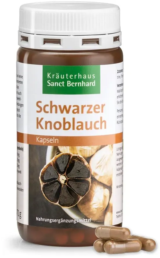 Verfügbarkeit: Auf Lager - Kategorie: Nahrungsergänzungsmittel - Kräuterhaus Sanct Bernhard - GTIN:4250382211433 - Jede Kapsel enthält 500 mg Schwarzer-Knoblauch-Extrakt Erhöhte Bioaktivität durch antioxidative Verbindungen (Flavonoide) Ohne intensiven Geschmack und Geruch 120 Kapseln für 4 Monate - 19,40 Euro bei Amazon Marketplace Health & Personal Care - gefunden von billiger.de Vit4ever bietet ein Premium-Produkt mit hohem SAC-Gehalt, laborgeprüft und vegan. ![]() ![]() Vit4ever Schwarzer Knoblauch 15:1 Extrakt - 180 Kapseln mit 750 mg - Premium: Mit S-Allylcystein (SAC) - Fermentiert - Geruchslos - Laborgeprüft - Hochdosiert - Vegan - Premium Qualität