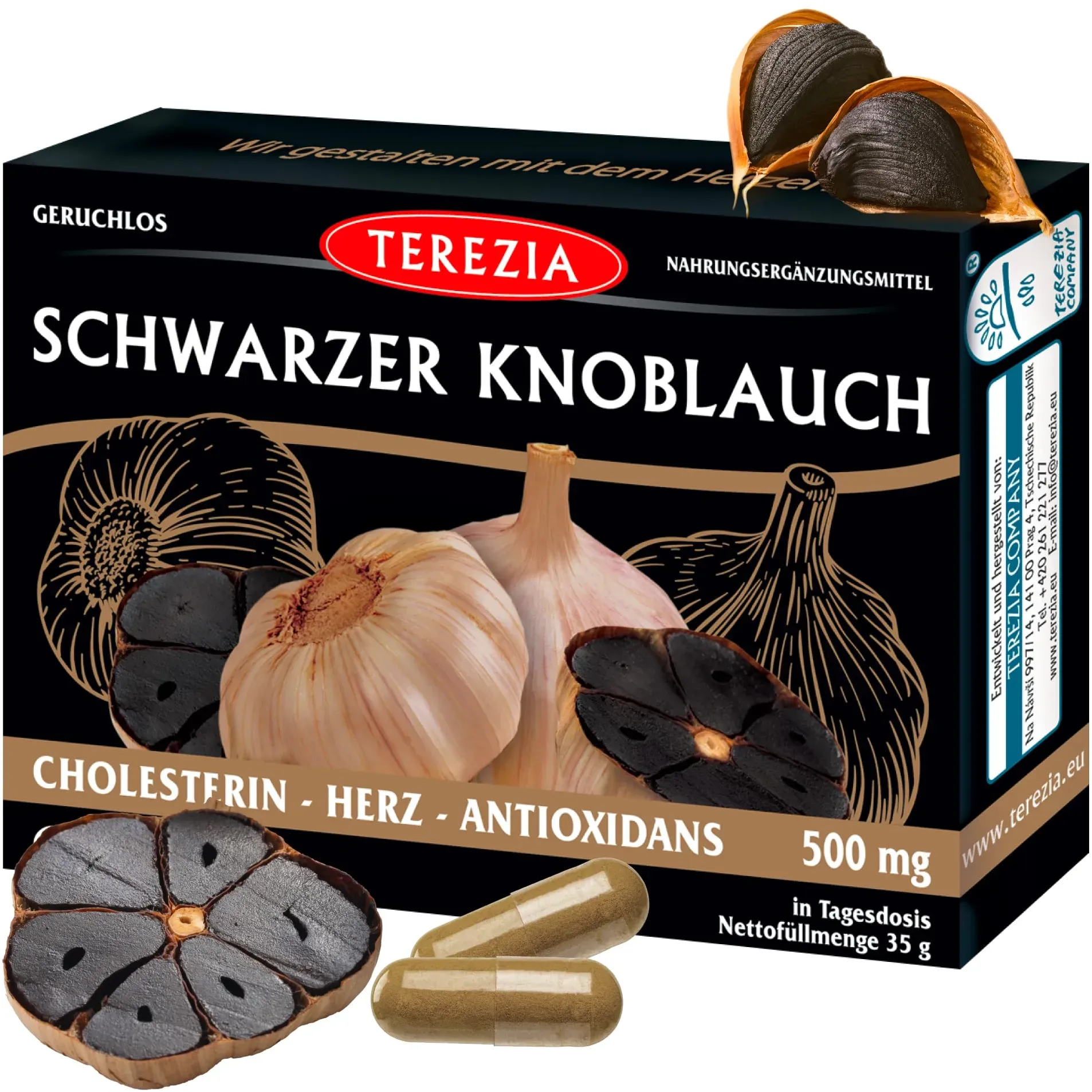 Verfügbarkeit: Auf Lager - Kategorie: Nahrungsergänzungsmittel - Botanicy - GTIN:4260408794857 - KNOBLAUCHKAPSELN mit Flüssig-Extrakt aus schwarzem Knoblauch (aged black garlic). Knobi gilt als interessant für die Herz- und Gefäßgesundheit (Blutdruck), fürs Cholesterin und das Immunsystem. MARKENROHSTOFF ABG10+: Formel mit 500 mg Knoblauchextrakt aus fermentiertem Knoblauch. Hohe Bioverfügbarkeit, hochdosiert 10-mal höheres antioxidatives Potenzial als normaler Knobi. Mit S-Allyl Cystein. OHNE KNOBI-GESCHMACK: Durch eine innovative Fermentationstechnik wird Allicin (die scharfe Note der Knollen!) in eine stabile Form gebracht. Daher sind die Knoblauch-Kapseln geruchs- & geschmacksneutral. KOMPLEX MIT VITAMINEN: Das pflanzliche Schwarze Knoblauch Supplement enthält Eisen, Vitamin B9, B12 & K1. Plus Vitamin B1 für die normale Herzfunktion. Natürlich, vegan ohne chemische Blutdrucksenker! LABORGEPRüFTE NAHRUNGSERGäNZUNG: Dank patentierter Markenrohstoffe steht Botanicy für Premium Nahrungsergänzungsmittel. Black Garlic Kapseln geprüft von einem deutschen Institut. Jetzt kaufen! - 16,99 Euro bei Amazon Marketplace Health & Personal Care - gefunden von billiger.de TEREZIA bietet hier eine hochdosierte Option, die das Immunsystem und die Herzgesundheit stärken soll. ![]() ![]() TEREZIA Schwarzer Knoblauch, Kapseln - 60 Kapseln pro Packung - Stärkt Immunsystem und Herzgesundheit - Premium-Qualität - 100% Natürlich ohne chemische Zusatzstoffe - hochdosiert 500mg