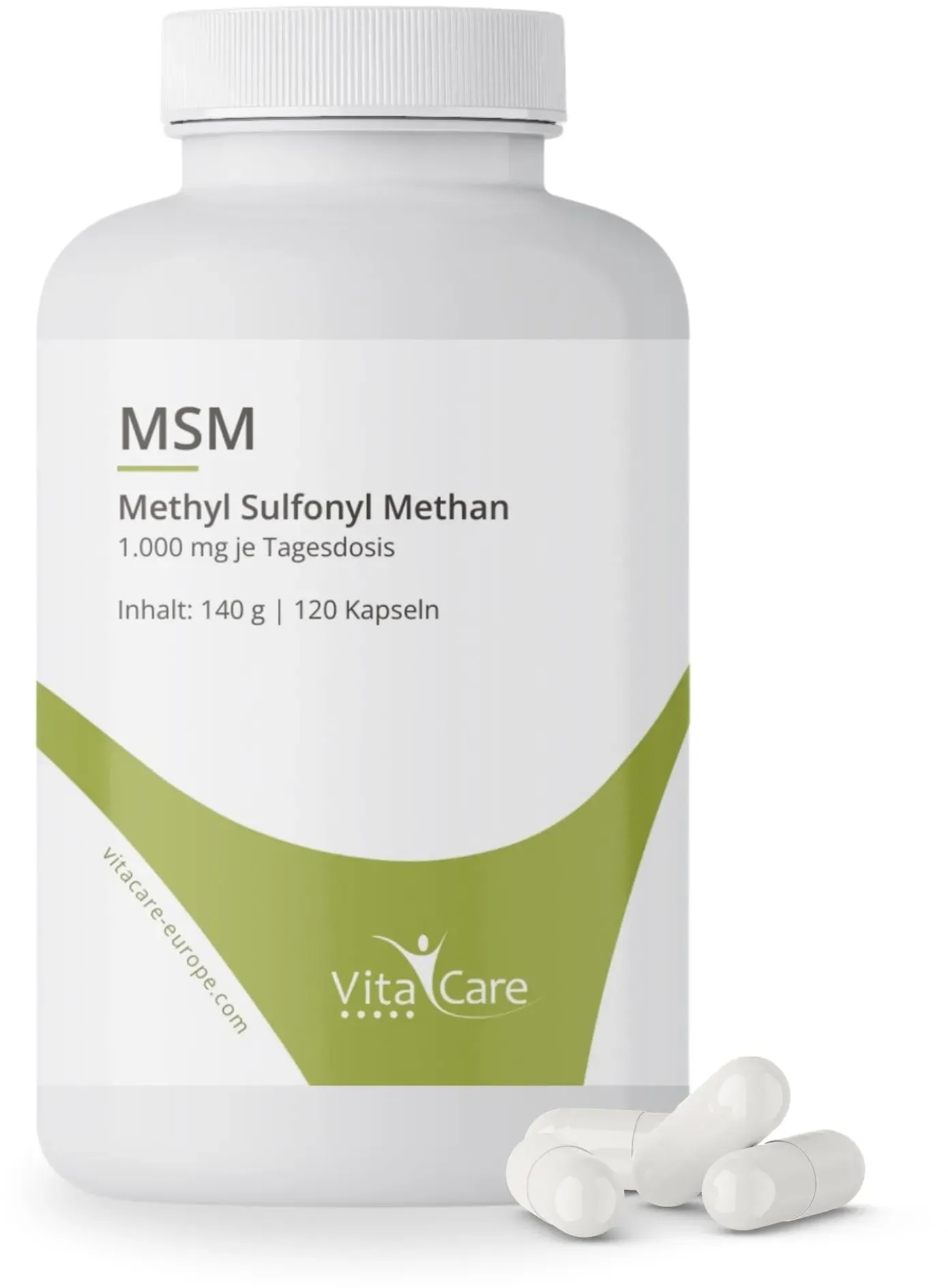 Kategorie: Tiergesundheit - anicanis - GTIN:4260642198237 - Hochwertiges MSM-Pulver. Rein organisches Schwefelpulver für Gelenke & Stoffwechsel, fördert Fell & Haut. Premium Einzelfuttermittel für Hunde & Katzen, 100% natürlich - 100% vegan 100% MSM Schwefelpulver, reines Naturprodukt. Schwefel ist ein unverzichtbarer Bestandteil körpereigener Substanzen. Essenziell für Sehnen, Bänder, Muskeln & Knochen für mehr Agilität & Bewegung, unterstützend bei altersbedingtem Verschleiss der Hunde-Gelenke. Zur Unterstützung des Bewegungsapparates bei Verschleißerscheinungen, natürliche Unterstützung für die normale Gangfunktion unterstützt ein gepflegtes, kräftiges und glänzendes Fell und vitale Haut. Zum Beimischen ins Hundefutter & BARF für Welpen, Junghunde, erwachsene und ältere Hunde Direkt aus der naftie Naturheilpraxis für Tiere. Premium Qualität ohne Zusatz- oder Konservierungsstoffe. In biologisch abbaubaren zertifizierten Papierbechern abgefüllt. So geht nachhaltig! - 14,85 Euro bei Amazon Marketplace Lawn & Garden - gefunden von billiger.de Diese MSM Kapseln sind eine praktische Option für die Nahrungsergänzung mit organischem Schwefel in hoher Bioverfügbarkeit. ![]() ![]() VitaCare MSM Kapseln, 120 Kapseln je 1000mg MSM-Pulver, Schwefel-Mangel vorbeugen, Schwefelpulver organisch & natürlich mit hoher Bioverfügbarkeit