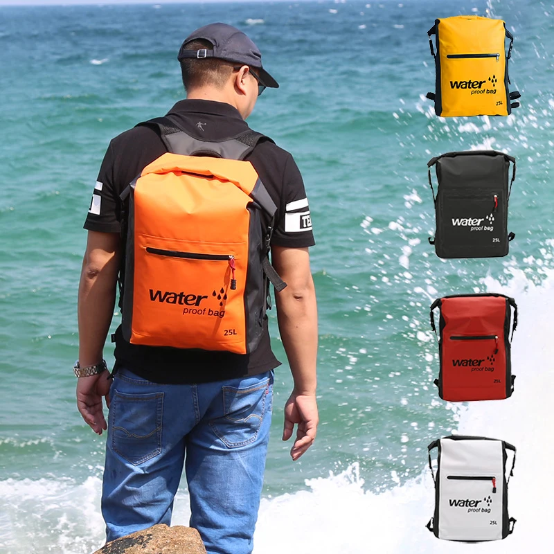 FUYAOZHISHANG - 25L Wasserdichter Packsack Schwimmrucksack Wasser Schwimmsack Kanu Kajakfahren Rafting Bootfahren Flusstrekking Solide Aufbewahrungstasche - bei de.aliexpress.com - aus Yadore Produktdaten Ein Camping-Schwimmrucksack mit großer Kapazität für 20.19 Euro, der spritzwassergeschützt ist und sich gut für Reisen und den Strand eignet. ![]() Camping-Schwimmrucksack mit großer Kapazität | Spritzwassergeschützte Aufbewahrung von Getriebe | Reise- und Stranddagucksack