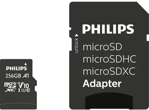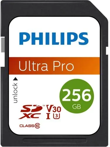 Sofort lieferbar, 3-4 Werktage in_stockPhilips SDXC Card 256GB Class 10 UHS-I U3 V30 A1 (256 GB, SDXC, U3, UHS-I), Speicherkarte, Schwarz