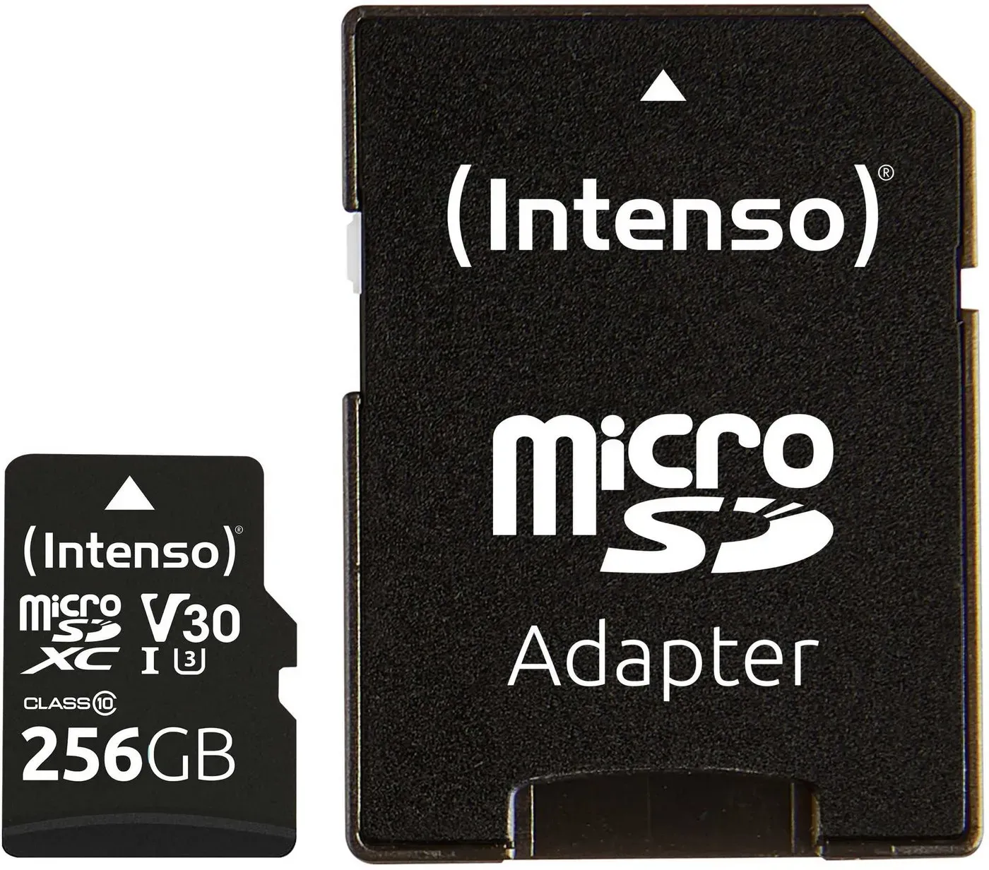 7 Händlerangebote bei billiger.de - Kategorie: SD-Karten - Intenso - 256 GB, microSDXC, 100/45 MB/s, Klasse 10, U3, V30, Schwarz Für Dich Profi das Beste. Höchstleistung. Höchstgeschwindigkeit. Höchst professionell. Für alle, die nie genug Speicherplatz auf dem Smartphone haben. Die microSD Karte UHS-I Professional trägt ihre Leistungsfähigkeit bereits im Namen. Professionellste, schnellste Lesegeschwindigkeiten von bis zu 100 MB/s und Schreibgeschwindigkeiten von bis zu 45 MB/s definieren das Maximum. Treibe Dein Smartphone mit Full HD und 4K-Qualität zu Höchsleistungen an. Die Ergebnisse werden absolut herausragend sein. Insbesondere bei ActionCams. Action für Dein Auge. Full HD und 4K Qualität. Die erforderliche Performance für Video-Aufnahmen in 4K €“ hier ist sie. Genau das Richtige für Dich, Deine ActionCam und Deine kreativen Experimente. Alles. Nur kein Standard. Mit UHS-I Standard. Insbesondere für ActionCams. Lesegeschwindigkeiten von bis zu 100 MB/s. Schreibgeschwindigkeiten von bis zu 45 MB/s. Das klingt schon nach Action. Intenso 3433492, 256 GB, MicroSDXC, Klasse 10, UHS-I, 100 MB/s, 45 MB/s Intenso 3433492. Kapazität: 256 GB, Flash Card Typ: MicroSDXC, Flash-Memory-Klasse: Klasse 10, Interner Speichertyp: UHS-I, Lesegeschwindigkeit: 100 MB/s, Schreibgeschwindigkeit: 45 MB/s, UHS Speed Klasse: Class 3 (U3), Video-Geschwindigkeitsklasse: V30. Schutzfunktion: Stoßfest, Temperaturbeständig, Wasserdicht, Röntgensicher, Produktfarbe: Schwarz - ... Die SanDisk Extreme SDXC UHS-I ist mit 32.50 Euro eine robuste und schnelle Karte für 4K UHD Videos. ![]() ![]() SanDisk Extreme SDXC UHS-I Speicherkarte 256 GB (V30, 180 MB/s Übertragung, U3, 4K UHD Videos, SanDisk QuickFlow-Technologie, wasserdicht, stoßfest, temperaturbeständig)