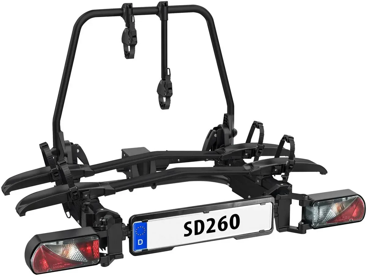 lieferbar-in 2-3 Werktagen bei dirEUFAB Heckfahrradträger SD260 Heck-Fahrradträger (2 Räder) E-Bike geeignet, Ausziehbar, E Bike tauglich, vormontiert, klappbar