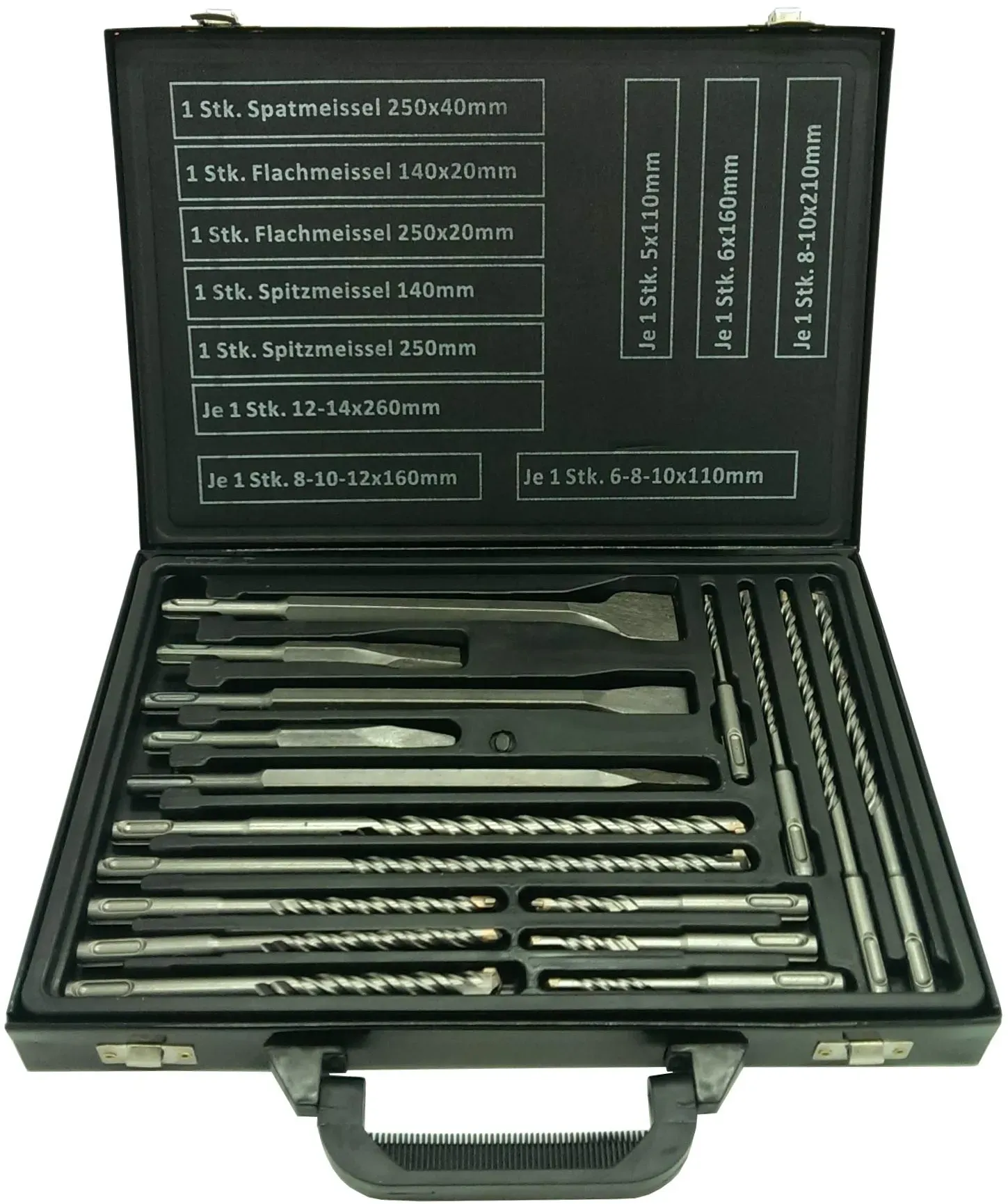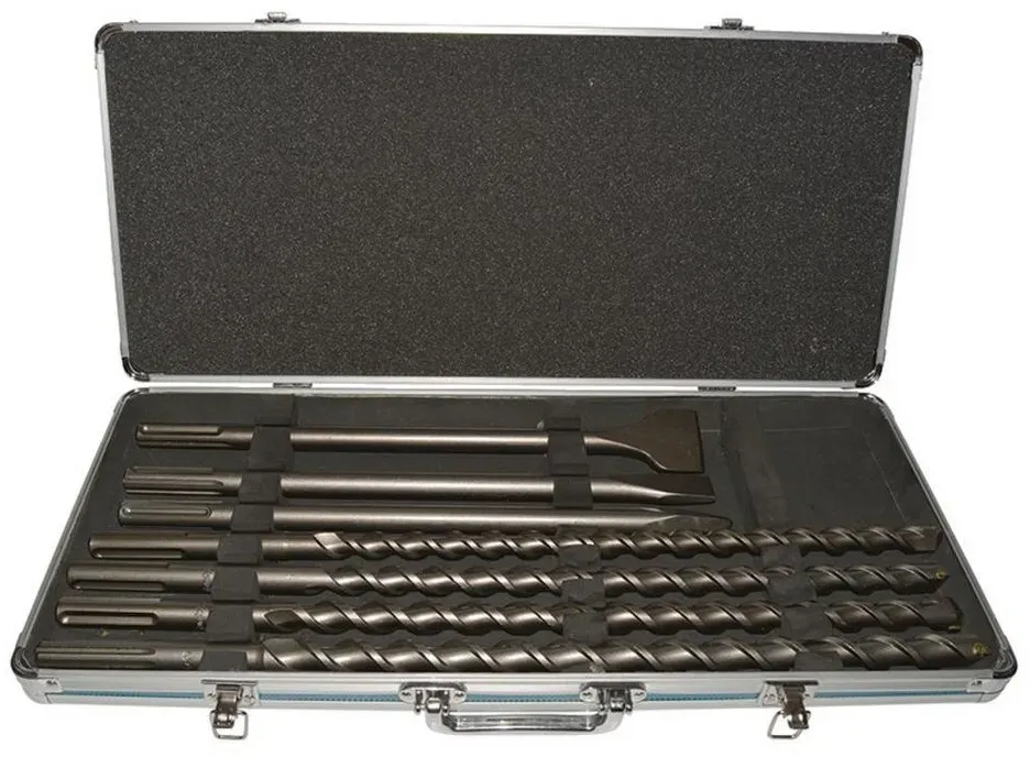 Zustand: Neu - Bohrersets - Makita - D-42444 - EAN: 0088381404907 - 1 x Spitzmeissel 250 mm 1 x Flachmeissel 20 x 140 mm 1 x Flachmeissel 20 x 250 mm 1 x Breitmeissel 40 x 250 mm 1 x Bohrer 5, 6, 8, 10 x 110 mm, 6, 8, 10, 12 x 160 mm, 8, 10 x 210 mm - bei Amazon.de Ein 17-teiliges SDS Plus Bohrer- und Meißelset im Metallkoffer von HOGA, das eine solide Grundausstattung darstellt. ![]() ![]() HOGA SDS Plus Bohrer und Meißel Set 17 teiliger Satz im Metallkoffer
