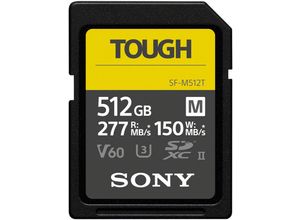 15 Händlerangebote bei billiger.de - Kategorie: SD-Karten - Kingston - • Speichertyp: SDXC (UHS-II) • Speicherkapazität: 512 GB • Geschwindigkeitsklasse: Cl10, U3, V60 • max. Lese-/Schreibgeschwindigkeit: 280 MB/s / 150 MB/s - GTIN:0740617340570 Die Sony SDXC-Karte TOUGH Cl10 UHS-II U3 V60 ist extrem robust und bietet hohe Geschwindigkeiten für anspruchsvolle Umgebungen. ![]() Sony SDXC-Karte 512GB TOUGH Cl10 UHS-II U3 V60
