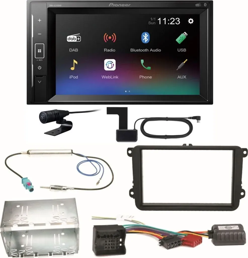 Zustand: Neu - Digital Media-Receiver - EHO - 700DAB2DINS539 VMX700DAB+Einbauset - EAN: 4067223047065 - VMX700DAB passend für Seat Alhambra (710, 711) ab 2010, Blendenfarbe: schwarz 2-DIN Autoradio kompatibel mit Wireless Apple CarPlay Android Auto und kfz-spezifischem Einbauset, Moniceiver mit 17,8 cm (7 Zoll) Touchscreen Max. Ausgangsleistung - 4 x 80 W, Cinch Vorverstärkerausgänge (FL / FR / RL / RR / SUB1 / SUB2) Universal Media Moniceiver, Bluetooth-Freisprecheinrichtung und Audiostreaming, kompatibel mit Wireless Apple CarPlay & Android Auto Falls nicht anders beschrieben, werden KEINE fahrzeugseitigen Canbus, Aktivsysteme, Lenkradfernbedienungen, Displays etc. untertsützt! Wir erstellen diese Angebote mit großer Sorgfalt, sollte sich dennoch mal ein Fehler einschleichen,bitte kontaktieren Sie uns und wir werden Ihnen umgehend eine Lösung anbieten. - Verkäufer: EHO im amazon.de Marketplace Das Pioneer DMH-A240DAB ist ein 2-DIN Autoradio mit DAB+ und Bluetooth, das eine gute Balance zwischen Preis und Funktionen bietet. ![]() ![]() Pioneer DMH-A240DAB DAB+ Bluetooth Einbauset für Seat Leon Alhambra Altea XL
