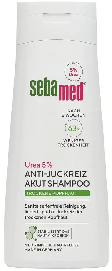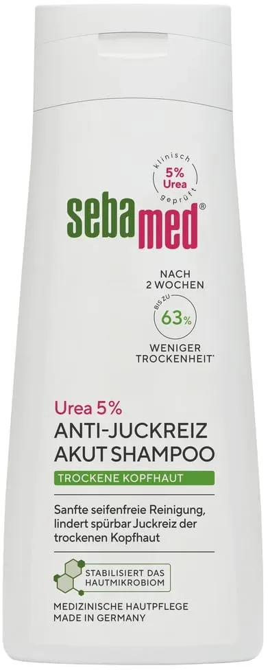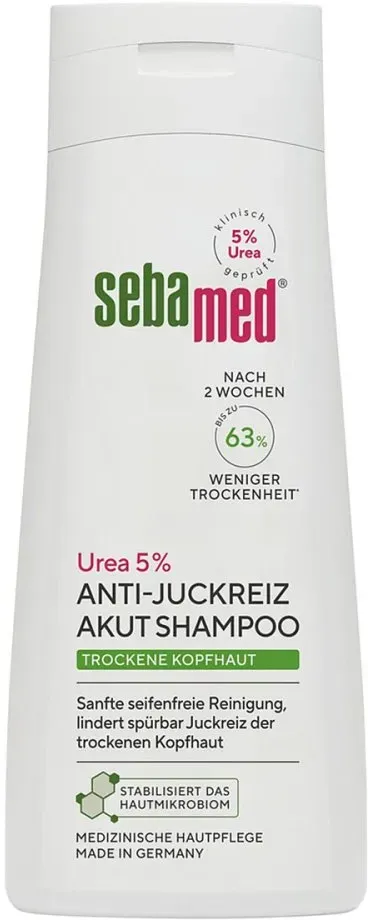Kategorie: Shampoo - Sebamed - GTIN:4103040019349 - Sebamed Dry Skin Shampoo 5% Urea Acute 200 ml is a dermatologically tested, gentle gel shampoo for dry, itchy scalps. It deeply moisturizes with urea, soothes itching with polidocanol, and cleanses softly using sugar surfactants to maintain healthy hair. - 4,95 Euro bei Joybuy - gefunden von billiger.de Dieses Angebot ist ebenfalls sehr preiswert und eine gute Option für den regelmäßigen Gebrauch. ![]() ![]() SEBAMED Trockene Haut 5% Urea akut Shampoo 200 ml