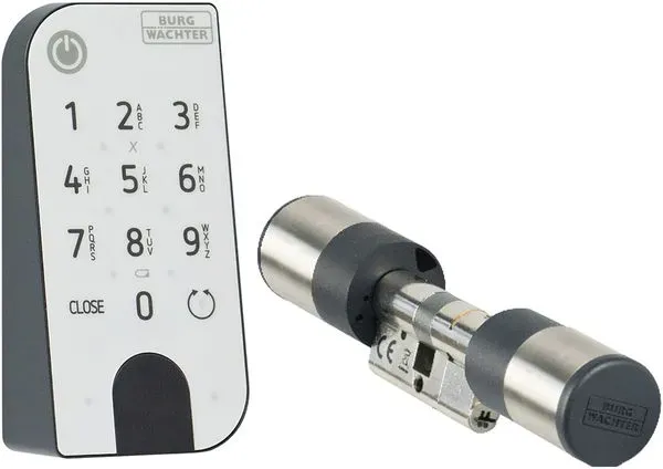 Auf Lager Versand durch AmazonBURG-WÄCHTER Elektronisches Türschloss, Zylinder und Keypad, Öffnung mit App, Pincode oder Funkschlüssel, ENTRYeasy 7601 PIN, Schwarz/Edelstahl Tastenfeld