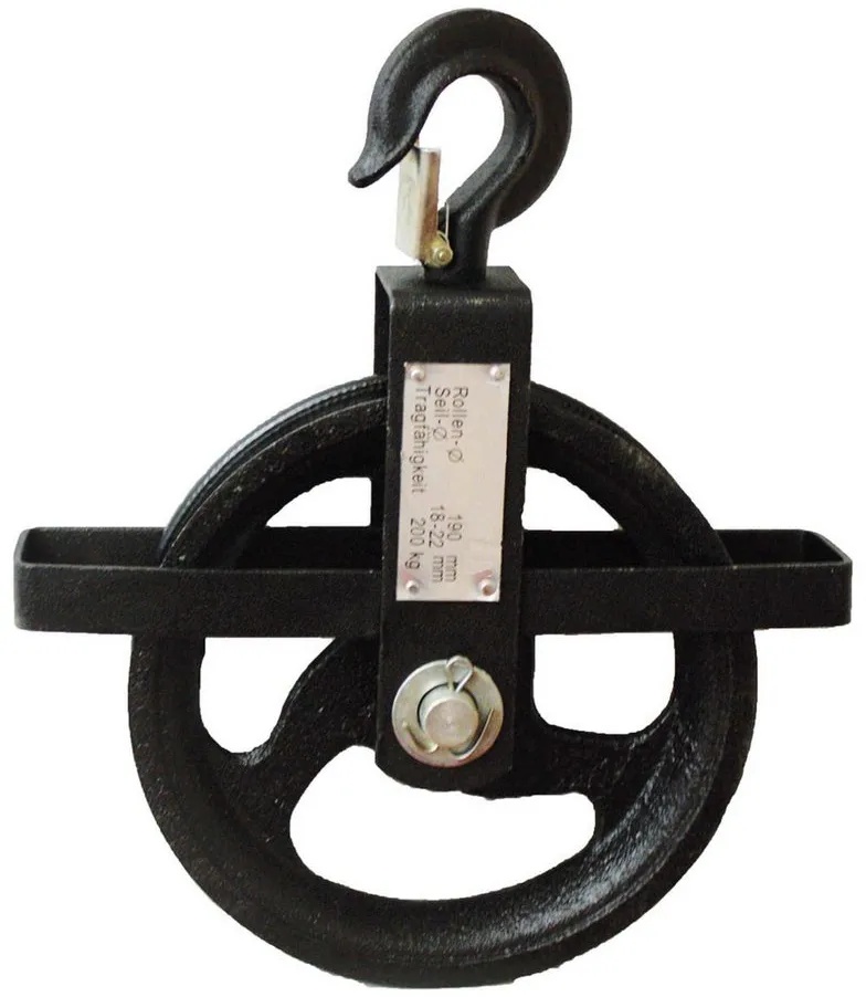 lieferbar-in 3-4 Werktagen bei dirE/D/E HDP Seilzug, Seilrad 190 mm 200 kg für Seile von 18 - 22 mm