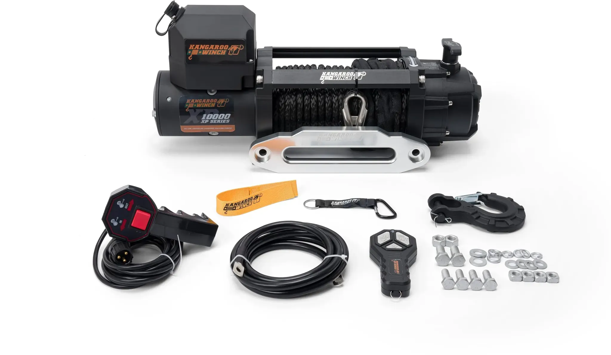 Kategorie: Werkstatteinrichtung - kangaroo winch - GTIN:5905527760343 - KOMPAKTES HOCHLEISTUNGSDESIGN - Die 12V elektrische Seilwinde, die mit einer beeindruckenden Zugkraft von 10 000 lbs / 4541 kg und einem leistungsstarken 7.0 PS Motor ausgestattet ist. Dank der praktischen Fernbedienung bietet sie hervorragende Leistung für Offroad-Abenteuer und professionelle Einsätze. Mit Abmessungen von 550 x 165 x 260 mm, einem Montagelochabstand von 245 mm x 80 mm und einem Gewicht von 28 kg zeichnet sie sich durch einfache Handhabung und problemlose Installation aus ROBUSTE BAUWEISE FüR LANGLEBIGKEIT - Ausgestattet mit einem 3-stufigen Planetengetriebe und einer übersetzung von 126:1, zeichnet sich die elektrische Seilwinde durch eine automatische, dynamische Bremse und ein widerstandsfähiges Kunststoffseil aus. Diese elektrische Winde rt dauerhafte Leistung unter anspruchsvollen Bedingungen und ist eine ideale Seilwinde für anhängerkupplung-Anwendungen FLEXIBLE STEUERUNG FüR VIELSEITIGEN EINSATZ - Die Akku Seilwinde bietet durch Funksteuerung und Kabelfernbedienung eine außergewöhnliche Bedienfreundlichkeit. Diese Flexibilität macht sie zu einem vielseitigen Werkzeug für zahlreiche Anwendungen, von der Bergung bis hin zu präzisen Platzierungsarbeiten, ideal für Pannenhilfe sowie als elektro Seilwinde und Seilwinde mit Fernbedienung MAXIMALE EFFIZIENZ, BEEINDRUCKENDE GESCHWINDIGKEIT - Eine Seilgeschwindigkeiten von bis zu 19 m/min im Leerlauf und starken 2,4 m/min unter der ... Dieses Modell von KANGAROO WINCH bietet eine beeindruckende Zugkraft von 6350 kg mit Kunststoffseil und Funkfernsteuerung für anspruchsvollste Aufgaben. ![]() ![]() KANGAROO WINCH Schnelle Elektrische Seilwinde 12V mit Funkfernsteuerung - 14 000 lbs Zugkraft - Langlebiges Kunststoffseil - Perfekt für Offroad - 4x4 Forst- und Nutzfahrzeuge (K14000XP)
