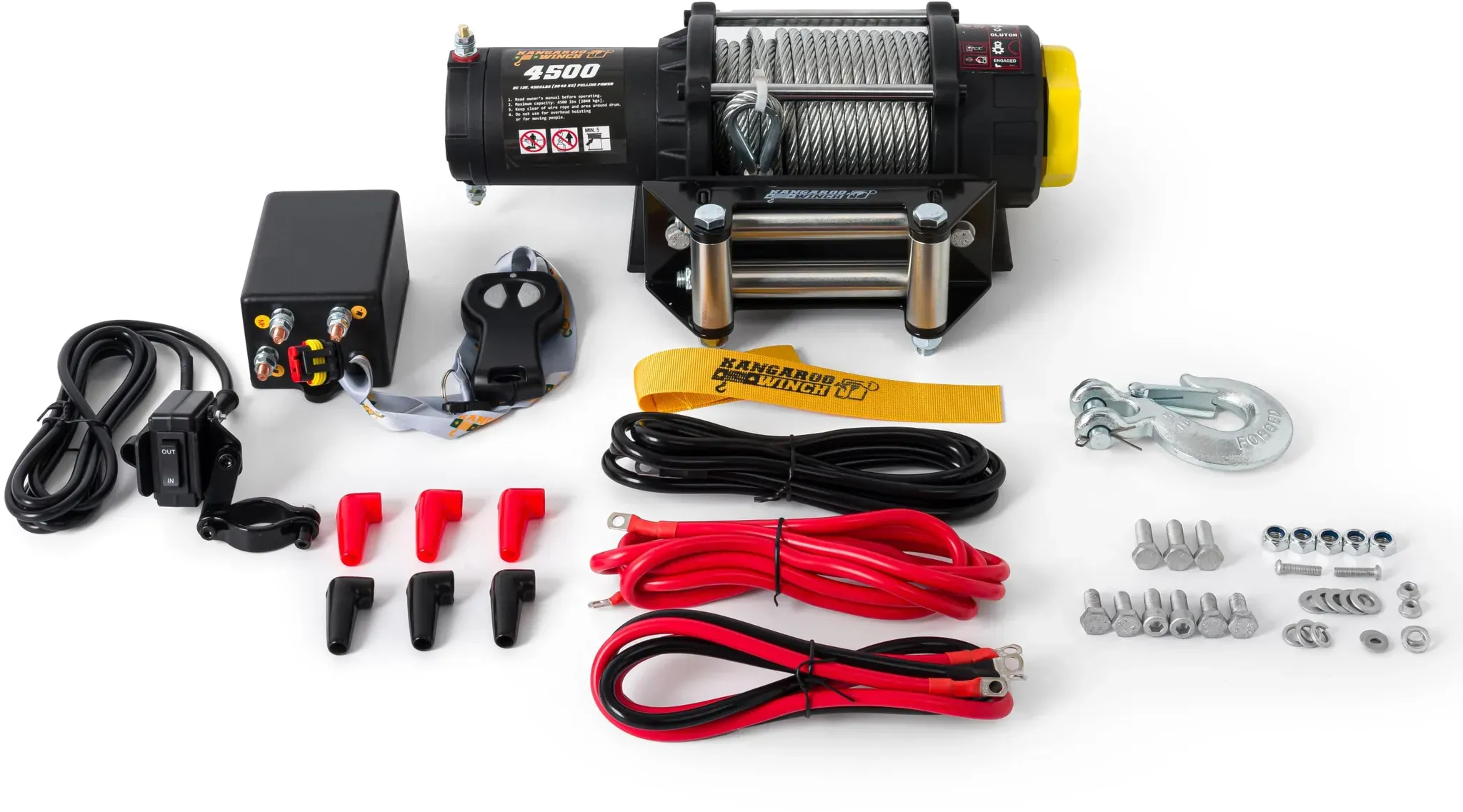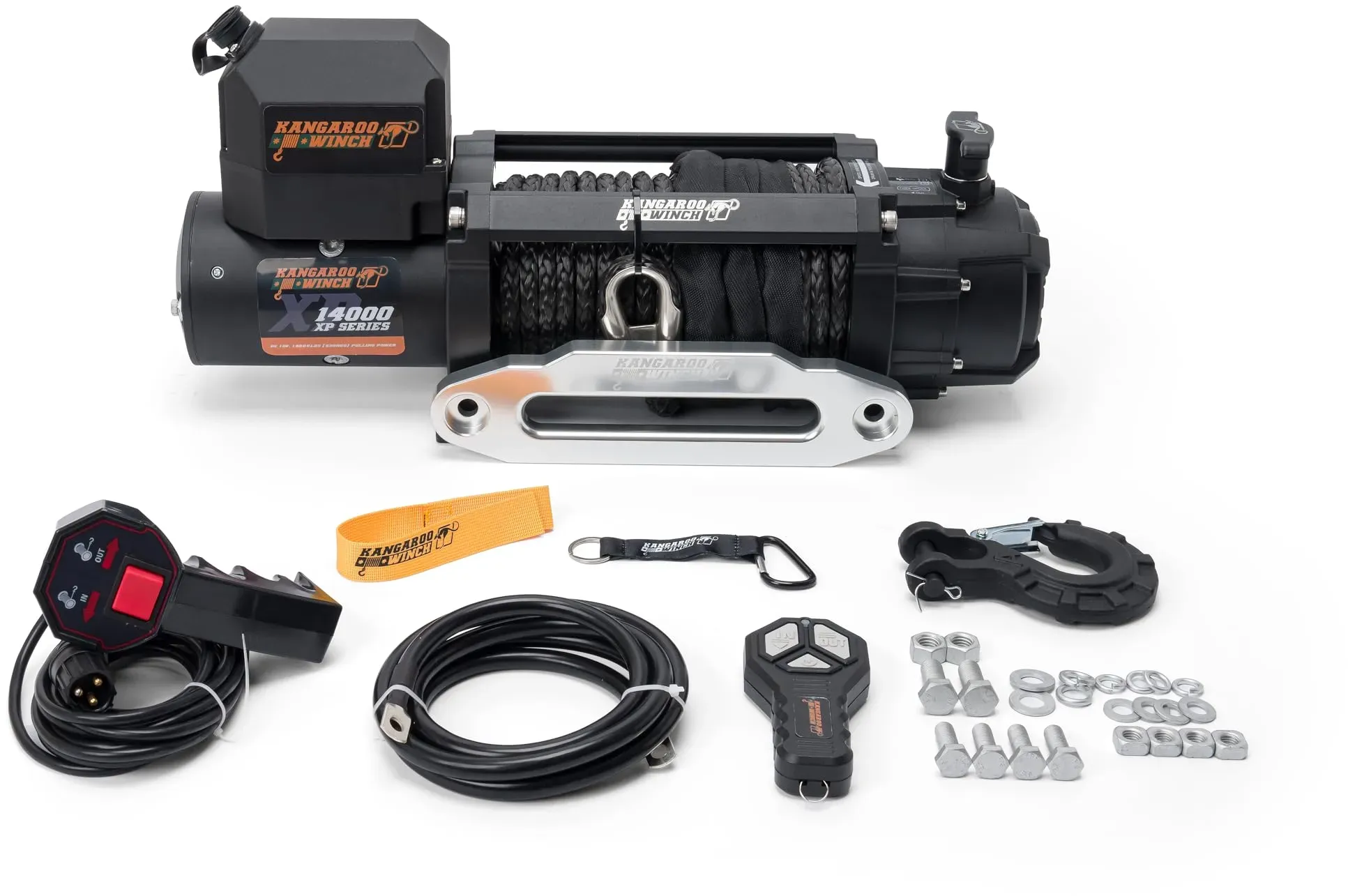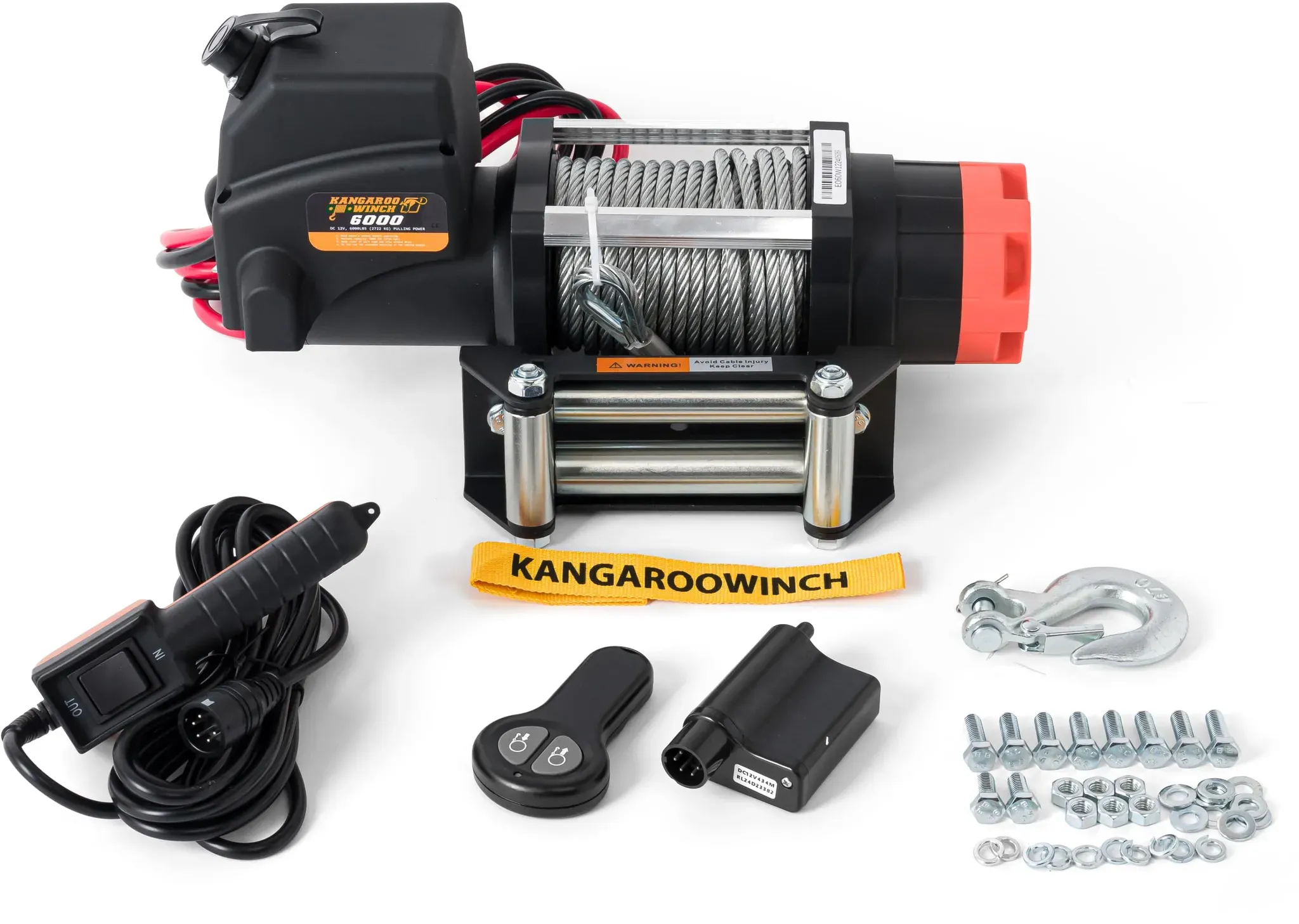 Kategorie: Werkstatteinrichtung - kangaroo winch - GTIN:5905527762583 - KOMPAKTES HOCHLEISTUNGSDESIGN - Die 12V elektrische Seilwinde, die mit einer beeindruckenden Zugkraft von 14 000 lbs / 6356 kg und einem leistungsstarken 7.0 PS Motor ausgestattet ist. Dank der praktischen Fernbedienung bietet sie hervorragende Leistung für Offroad-Abenteuer und professionelle Einsätze. Mit Abmessungen von 550 x 165 x 260 mm, einem Montagelochabstand von 245 mm x 80 mm und einem Gewicht von 29 kg zeichnet sie sich durch einfache Handhabung und problemlose Installation aus ROBUSTE BAUWEISE FüR LANGLEBIGKEIT - Ausgestattet mit einem 3-stufigen Planetengetriebe und einer übersetzung von 216:1, zeichnet sich die elektrische Seilwinde durch eine automatische, dynamische Bremse und ein widerstandsfähiges Kunststoffseil aus. Diese elektrische Winde rt dauerhafte Leistung unter anspruchsvollen Bedingungen und ist eine ideale Seilwinde für anhängerkupplung-Anwendungen FLEXIBLE STEUERUNG FüR VIELSEITIGEN EINSATZ - Die Akku Seilwinde bietet durch Funksteuerung und Kabelfernbedienung eine außergewöhnliche Bedienfreundlichkeit. Diese Flexibilität macht sie zu einem vielseitigen Werkzeug für zahlreiche Anwendungen, von der Bergung bis hin zu präzisen Platzierungsarbeiten, ideal für Pannenhilfe sowie als elektro Seilwinde und Seilwinde mit Fernbedienung MAXIMALE EFFIZIENZ, BEEINDRUCKENDE GESCHWINDIGKEIT - Eine Seilgeschwindigkeiten von bis zu 6 m/min im Leerlauf und starken 1,4 m/min unter der ... Eine robuste Seilwinde für Offroad-Fahrzeuge mit einer Zugkraft von 4536 kg, die für anspruchsvolle Bergungen geeignet ist. Motointegr ator.de