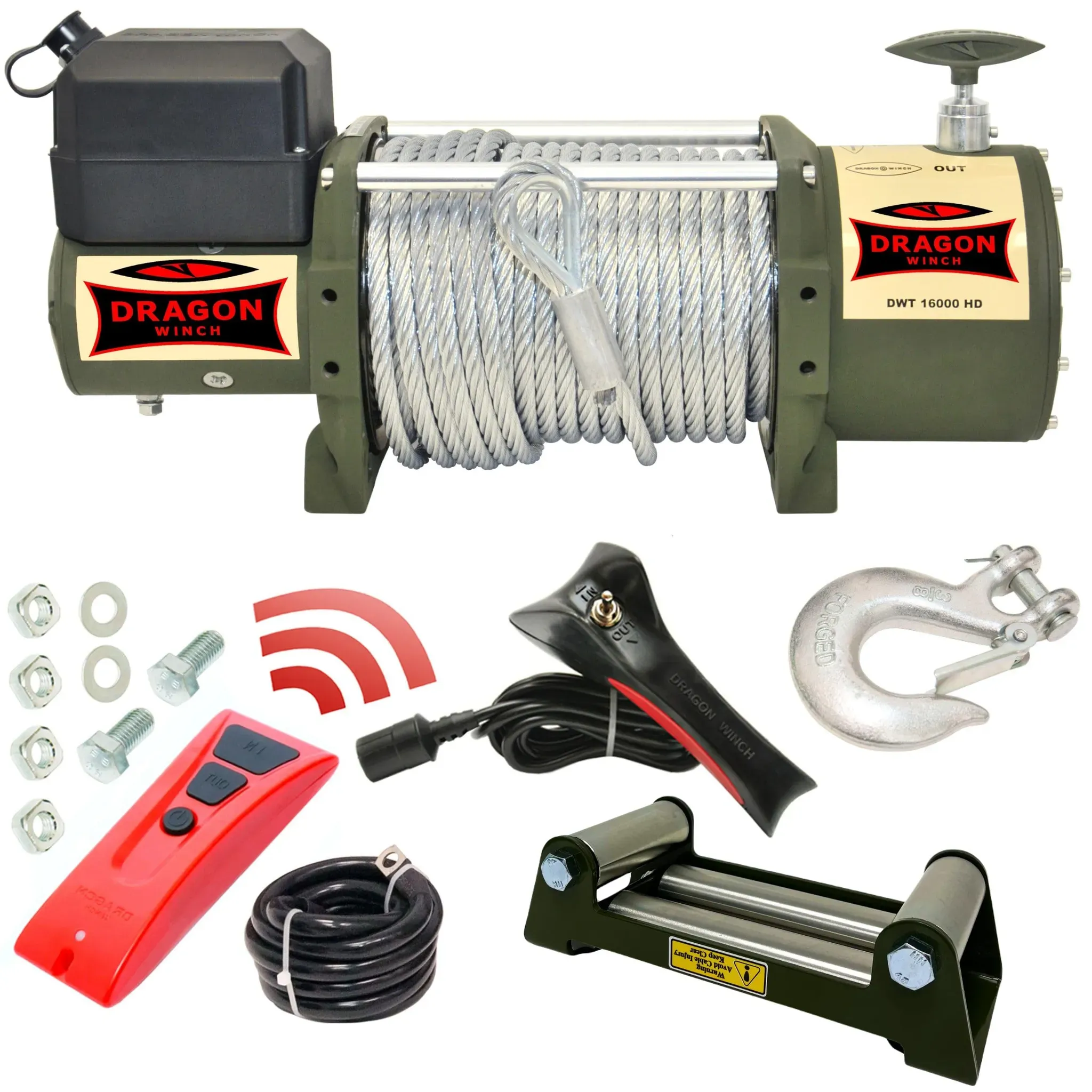 EAN: 6152723657642 - Unsere Hochleistungs-Elektrowinde ist die perfekte Lösung für die Notstromversorgung Ihres Fahrzeugs. Entwickelt für die Bergung im Gelände, verleiht sie Ihrem Fahrzeug eine Seilzugkapazität von bis zu 8165 kg. Egal ob Schlamm, Regen oder schwere Lasten - diese Winde bietet die zusätzliche Kraft, um schnell wieder mobil zu sein. Ideal für Geländewagen, SUVs und die Beförderung schwerer Materialien wie Holz. Bewältigen Sie Hindernisse mit Zuversicht und Kraft! Key Benefits:Erhöhte Seilzugkapazität von bis zu 8165 kg12-V-DC/5,7-PS-Kupfermotor für konstante LeistungStabile Zugkraft durch 3-stufiges PlanetengetriebeHochleistungsstahlkabel mit 19 Strängen für robuste LeistungKabellose und kabelgebundene Fernbedienung für einfache BedienungWasserdicht nach IP55 mit rostbeständiger Oberfläche für sorgenfreie Nutzung Detailed Explanation of Each USP:Unsere LKW-Winde wird von einem leistungsstarken 12-Volt-Motor angetrieben und bietet eine konstante Leistung, auch bei widrigen Bedingungen. Das Hochleistungsstahlkabel mit 19 Strängen ist extrem robust und hält jeder Herausforderung stand. Die kabellose und kabelgebundene Fernbedienungsoption ermöglicht eine einfache und präzise Steuerung in einem Umkreis von 20 Metern. Die Winde ist wasserdicht nach IP55 und verfügt über eine rostbeständige Oberfläche für den Einsatz unter allen Bedingungen. Package Contents:Elektrische Seilwinde mit 12V-DC-MotorKabellose FernbedienungKabelgebundene FernbedienungFarbcodierte ... Dieses High-End-Modell von DRAGON WINCH bietet eine enorme Zugkraft von 6803 kg mit Synthetikseil und ist wasser- und sandfest, ideal für extreme Offroad-Bedingungen. ![]() ![]() DRAGON WINCH Elektrische Seilwinde Highlander 12V 15000 lbs (6803 kg) mit Synthetikseil 21m für Off-road, Geländewagen, SUV Wasser- und Sandfest I Einschließlich kabelloser Fernsteuerung Winde Zubehör