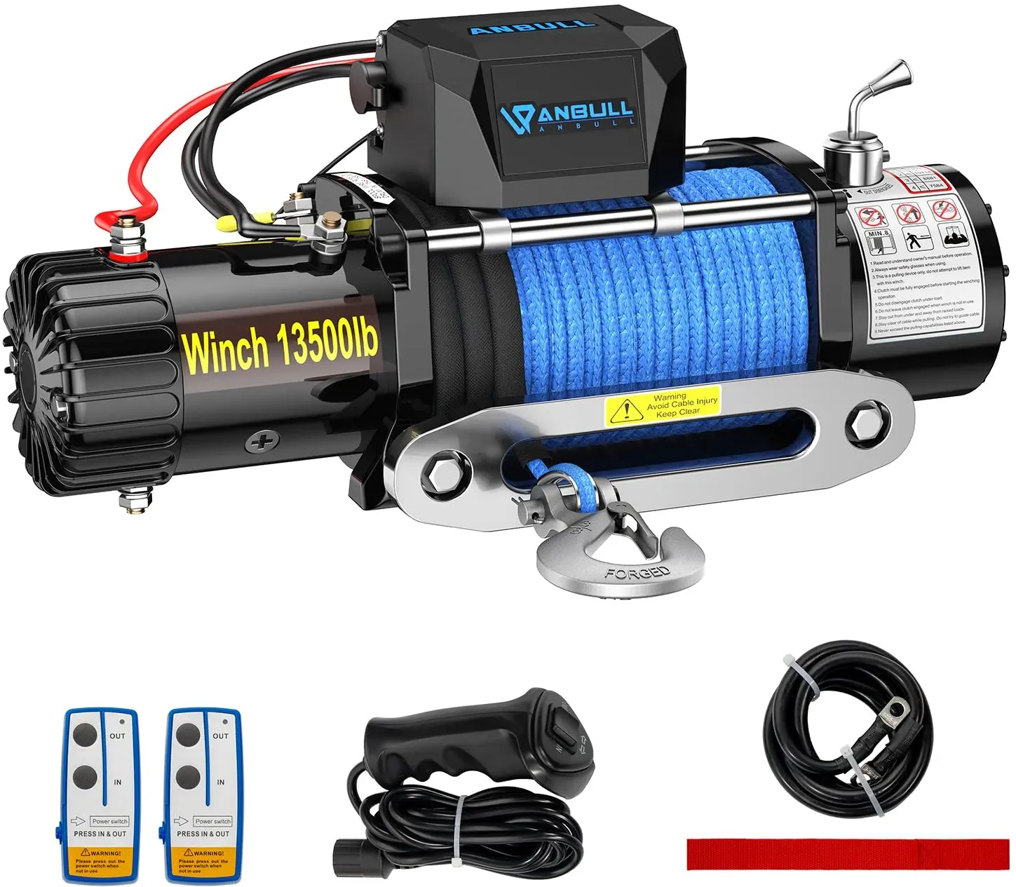 Auto Schleppsystem Elektrische Seilwinde Industriegeräte - EAN:0197988416371 - VEVOR Elektrische Seilwinde, 6000 lb Tragkraft, 12 V DC für LKWs mit 1/4 Zoll x 55 Fuß Synthetikseil, Aluminium-Seilführung, zwei Fernbedienungsoptionen, IP55-Wasserbeständigkeit, ideal zum Schleppen von SUVs, LKWs, Jeeps, Anhängern und BootenVEVOR Elektrische Seilwinde für LKWZuverlässiges AntriebssystemZuverlässiges und sicheres ZiehenLanglebiges WindenseilBequeme StromversorgungVielseitige LeistungHauptmaterial: Aluminiumlegierung, Stahl, Kupfer, Kunststoff (PPS und PA usw.),Nennzugkraft: 6000 lbs / 2722 kg,Seilspezifikationen: Φ 1/4 Zoll x 55 Fuß / Φ 0,6 x 1676,4 cm,Nettogewicht: 40,6 lbs / 18,42 kg,Seilmaterial: Polyethylen, 12 Stränge,Artikelabmessungen: 17,7 x 6,1 x 8,4 Zoll / 44,9 x 15,6 x 21,5 cm,Fernbedienung: Drahtlose + kabelgebundene Fernbedienung,Reichweite der kabellosen Fernbedienung: 20 m,Artikelmodellnummer: S6000,Spannung/Leistung: 12 V DC / 2,5 PS,Übersetzungsverhältnis: 195,8:1,Schutzart: IP55 - gefunden von Kelkoo Die Anbull Seilwinde überzeugt mit einer sehr hohen Zugkraft von 6136 kg, Synthetikseil und IP67 Wasserdichtigkeit, was sie zu einer langlebigen Wahl macht. ![]() ![]() Anbull Elektrische Seilwinde 12V, 13 500 LBS/ 6 136 Kg Motorwinde Seilzug, Synthetikseil 9.5mm*26m, Wasserdicht nach IP67, Nylonseil, Kompatibel mit Quad, SUV, LKW, Bootstrailer, SUV Pickup