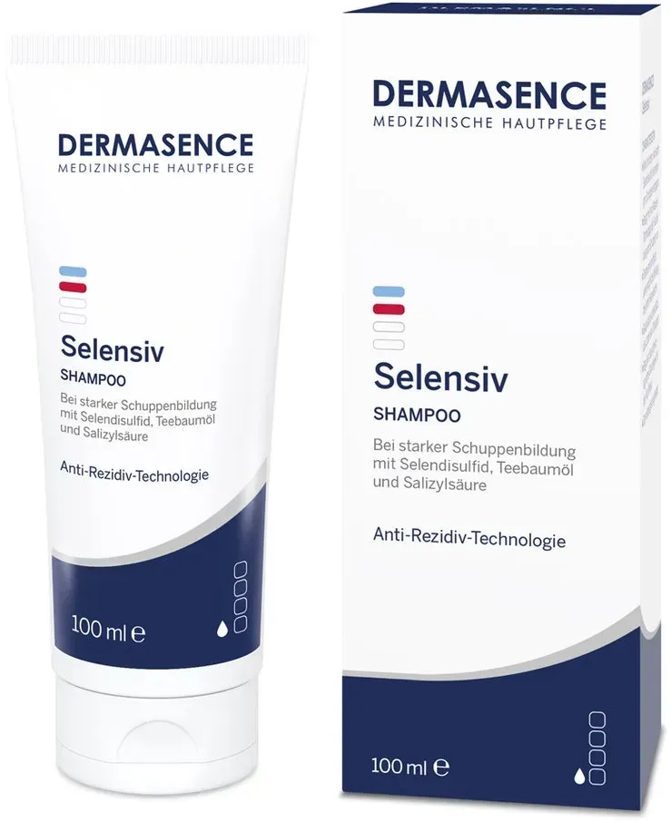 103 ,6 / 1 l - DERMASENCE - EAN: 4260149618405 - Das medizinische Shampoo wirkt mit dem Aktivstoff Selendisulfid hartnäckigen Schuppen bei fettiger und trockener Kopfhaut entgegen. Beugt mit seiner Anti-Rezidiv-Technologie der Neubildung von Schuppen vor. Teebaumöl entfaltet seine natürliche... - bei shop-apotheke.com - aus Yadore Produktdaten medpex.de bietet das Shampoo zu einem sehr guten Preis an, der im unteren Preissegment liegt. ![]() ![]() DERMASENCE Selensiv Shampoo 100 ml