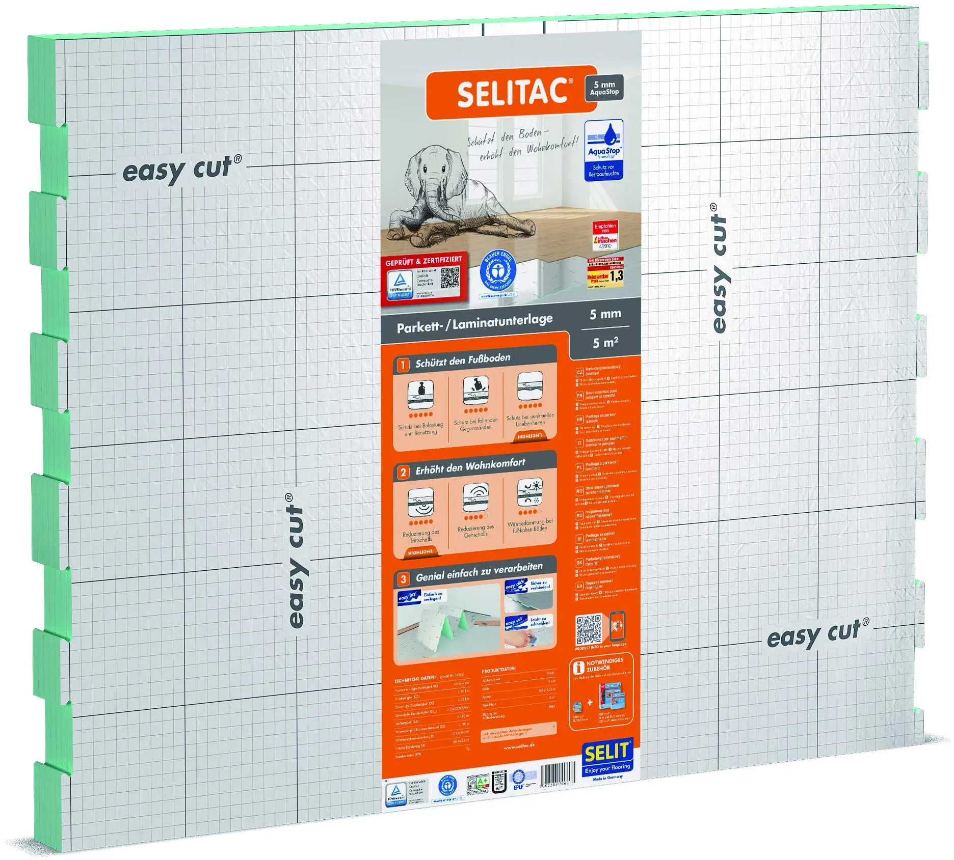 Selitac 5 mm META PreisvergleichMit dem Meta-Preisvergleich suchen Sie gleichzeitig bei den großen Preisvergleich Portalen!Jetzt live Suche nach selitac 5 mm starten! Selitac 5 mm KaufberatungBei der Suche nach Selitac 5 mm handelt es sich um eine hochwertige Trittschalldämmung und Unterlage für Parkett und Laminat mit einer Stärke von 5 mm. Diese Unterlage ist besonders geeignet für Holzböden und mineralische Untergründe, bietet eine sehr gute Geh- und Trittschalldämmung (bis zu 22 dB) und gleicht Unebenheiten bis zu 4 mm aus[1][3][4][5]. Wichtige Produktmerkmale und Vorteile von Selitac 5 mm sind: