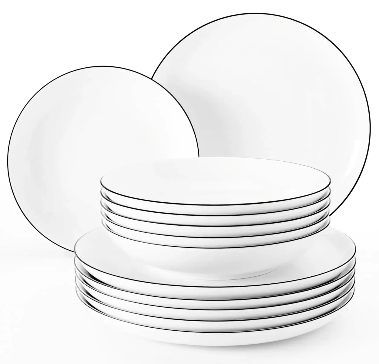 Kategorie: Services - SELTMANN WEIDEN - GTIN:4052212052021 - Dieses schöne Set von Seltmann Weiden besteht aus 6 Suppenschalen (21 cm) und 6 Esstellern (26 cm) und eignet sich zum Servieren verschiedenster kulinarischer Kreationen Sein hochschlagfestes Hartporzellan macht ihn robust und praktisch und gewährleistet zudem eine sichere Verwendung in der Spülmaschine, der Mikrowelle und im Backofen Die Lido Line von Seltmann ist nach dem italienischen Wort für 'Strand' benannt; der Kontrast zwischen weißem Porzellan und schwarzem Außenrand bringt entspanntes Urlaubsfeeling auf jeden Tisch Seltmann Weiden ist einer der führenden Porzellanhersteller; mit mehr als 20 n Erfahrung produziert das deutsche Unternehmen hochwertiges Porzellan für Haushalte, Hotels und Gastronomie Das Unternehmen achtet auf eine umwelt- und gesundheitsverträgliche Produktion; es verwendet Materialien aus natürlichen Mineralien, was eine Herstellung ohne chemische Zusätze rt - 77,06 Euro bei Amazon Marketplace Home - gefunden von billiger.de ![]() ![]() Seltmann Weiden Lido Black Line Speiseteller 6er Set, ø 26 cm, Runder Essteller mit schwarzem Rand, Porzellan