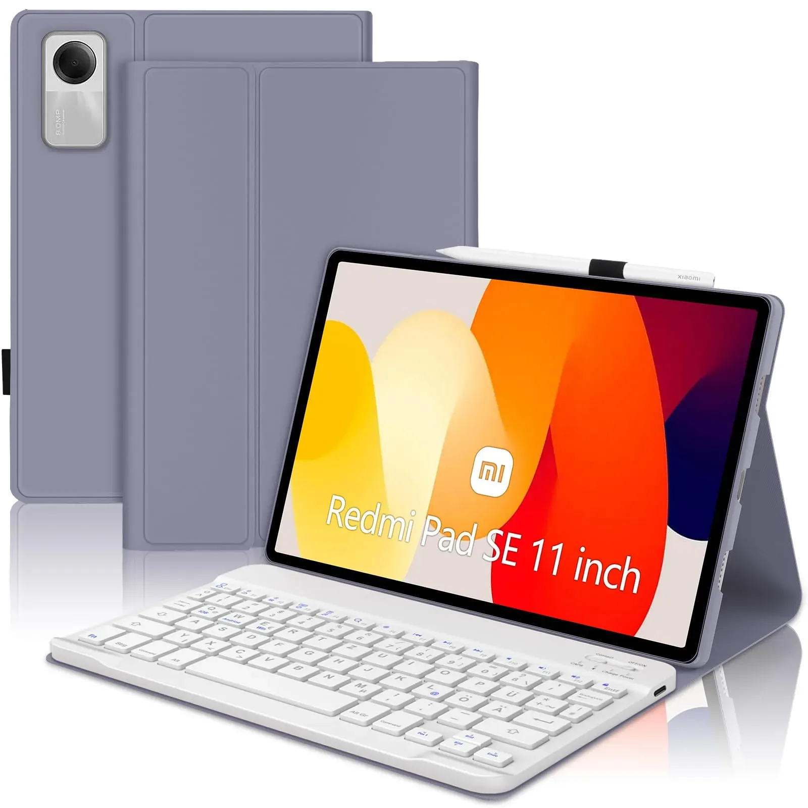 Kategorie: Zubehör für Tablet PCs - SENGBIRCH - Kompatibel - Tasche für das Redmi Pad SE 11'' 2023 mit Bluetooth-Tastatur, QWERTZ Deutsche-Layout und benutzerdefinierten Tastenkombinationen für das tablet, einschließlich Lautstärke, Musiksteuerung, Helligkeit und mehr. VIELFäLTIGE BLICKWINKEL UND SMART WAKE - Die Tastaturhülle verfügt über drei Falten, mit denen Sie Ihren Computer in ein Notebook verwandeln und den Blickwinkel ganz einfach auf jede beliebige Höhe einstellen können. Das tablet schaltet sich automatisch in den Standby-/Weckmodus, wenn die Hülle geschlossen oder geöffnet wird, und ist somit einfach zu bedienen und energiesparend. Abnehmbare Bluetooth Tastatur mit QWERTZ Layout- Die Reichweite der Bluetooth-Tastatur beträgt bis zu 10 Meter und die magnetische Bluetooth-Tastatur lässt sich leicht anbringen und abnehmen. Wenn Sie sie abnehmen, können Sie die Tastatur überall aufstellen und bequem tippen. Wenn die Tastatur nicht verwendet wird, wird sie an der magnetischen Hülle befestigt und verhindert, dass sie versehentlich herunterfällt. Leise Tippen - Genießen Sie ein komfortables, flüssiges und leises Tipperlebnis mit den leisen Scissor Switch-Tasten, die für schnelles und effizientes Tippen konzipiert sind und sicherstellen, dass Sie bei der Arbeit oder beim Chatten keine Taste verfehlen. Die Tasten mit niedrigem Profil fühlen sich gut an und bieten einen großen Spielraum für die Fingerspitzen. Sie genießen ein perfektes Tipperlebnis. Intelligente ... ![]() ![]() SENGBIRCH Tastatur Hülle für Xiaomi Redmi Pad SE 11 Zoll 2023 - QWERTZ Deutsche Layout Abnehmbare Wireless Bluetooth Keyboard, Tastaturhülle für Redmi Pad SE 11" 2023, Violett
