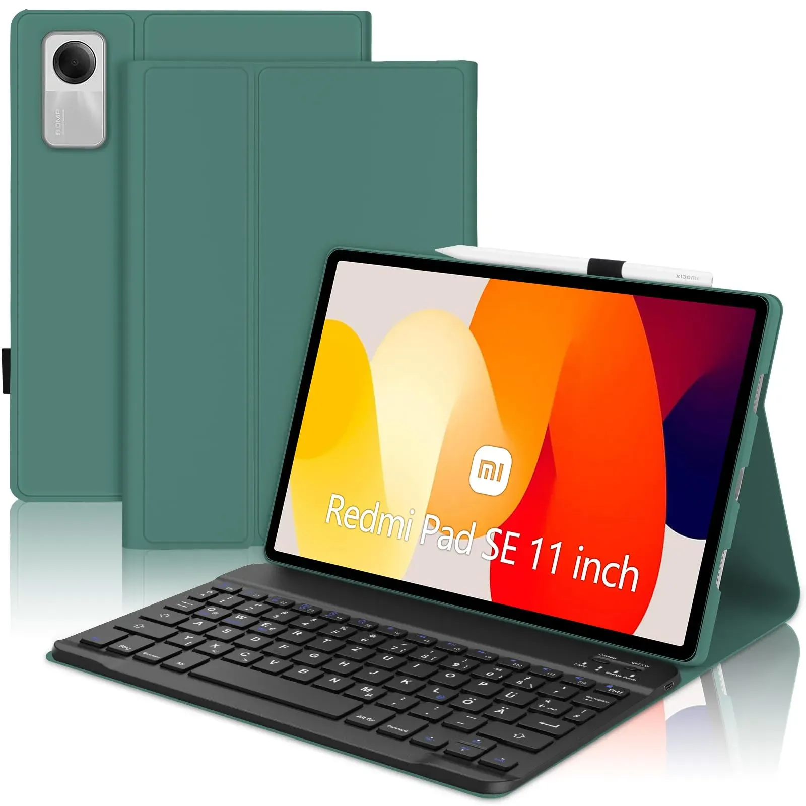 Kategorie: Zubehör für Tablet PCs - SENGBIRCH - Kompatibel - Tasche für das Redmi Pad SE 11'' 2023 mit Bluetooth-Tastatur, QWERTZ Deutsche-Layout und benutzerdefinierten Tastenkombinationen für das tablet, einschließlich Lautstärke, Musiksteuerung, Helligkeit und mehr. VIELFäLTIGE BLICKWINKEL UND SMART WAKE - Die Tastaturhülle verfügt über drei Falten, mit denen Sie Ihren Computer in ein Notebook verwandeln und den Blickwinkel ganz einfach auf jede beliebige Höhe einstellen können. Das tablet schaltet sich automatisch in den Standby-/Weckmodus, wenn die Hülle geschlossen oder geöffnet wird, und ist somit einfach zu bedienen und energiesparend. Abnehmbare Bluetooth Tastatur mit QWERTZ Layout- Die Reichweite der Bluetooth-Tastatur beträgt bis zu 10 Meter und die magnetische Bluetooth-Tastatur lässt sich leicht anbringen und abnehmen. Wenn Sie sie abnehmen, können Sie die Tastatur überall aufstellen und bequem tippen. Wenn die Tastatur nicht verwendet wird, wird sie an der magnetischen Hülle befestigt und verhindert, dass sie versehentlich herunterfällt. Leise Tippen - Genießen Sie ein komfortables, flüssiges und leises Tipperlebnis mit den leisen Scissor Switch-Tasten, die für schnelles und effizientes Tippen konzipiert sind und sicherstellen, dass Sie bei der Arbeit oder beim Chatten keine Taste verfehlen. Die Tasten mit niedrigem Profil fühlen sich gut an und bieten einen großen Spielraum für die Fingerspitzen. Sie genießen ein perfektes Tipperlebnis. Intelligente ... ![]() ![]() SENGBIRCH Tastatur Hülle für Xiaomi Redmi Pad SE 11 Zoll 2023 - QWERTZ Deutsche Layout Abnehmbare Wireless Bluetooth Keyboard Case für Redmi Pad SE 11" 2023, Grün