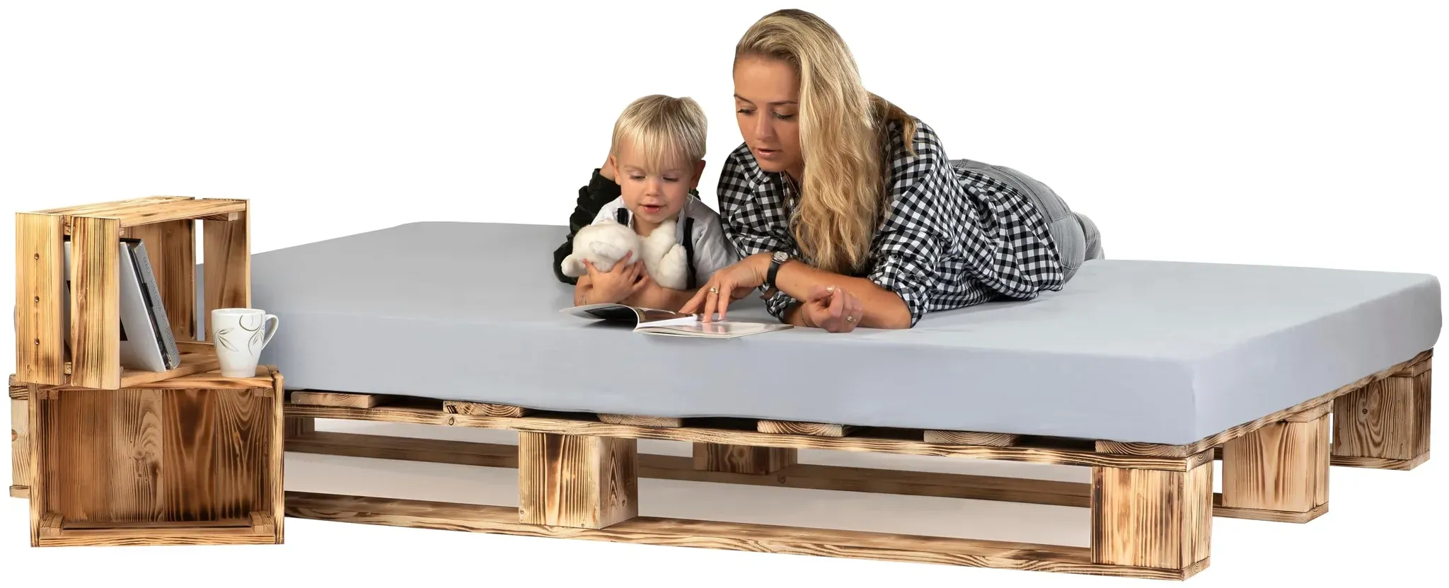 Verfügbarkeit: Auf Lager - Kategorie: Betten - lermowood - GTIN:5906852102709 - œ Hochwertiges Palettenbett aus massivem Fichtenholz €“ hergestellt aus natürlichen, umweltfreundlichen Materialien, frei von Chemikalien und Lacken, für einen gesunden Schlaf und maximale Sicherheit. œ Modernes Design in 6 Farben €“ erhältlich in den Farbtönen Natur, Rustikal, Weiß, Grau, Eiche und Palisander, passend für verschiedene Einrichtungsstile von Loft bis Skandinavisch. œ Verfügbar in verschiedenen Größen von 80x200 cm bis 200x200 cm €“ die große Auswahl an Größen macht das Bett ideal für kleine Schlafzimmer sowie geräumige Innenräume. œ Hohe Belastbarkeit bis zu 500 kg €“ stabile und robuste Konstruktion aus dicken Holzbrettern sorgt für Langlebigkeit, Widerstandsfähigkeit und zuverlässige Nutzung über Jahre hinweg. œ Einfache Montage €“ schneller und intuitiver Aufbau, alle benötigten Schrauben und eine detaillierte Anleitung sind im Lieferumfang enthalten, sodass die Montage in wenigen Minuten abgeschlossen ist. - 219,96 Euro bei Amazon Marketplace Home - gefunden von billiger.de Das Lermowood Palettenbett M2 in geflammter Optik mit Lattenrost bietet ein modernes Design und eine Komforthöhe. ![]() ![]() Lermowood Palettenbett M2 aus Holz 140 x 200 cm Geflammt mit Lattenrost Holzbett 30cm Stabiles Seniorenbett Kinderbett Jugendbett Gästebett erhöhtes Einzelbett Bettgestell Futonbett Komforthöhe