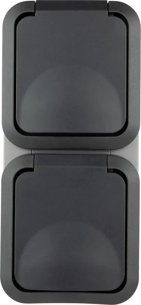 Sofort lieferbar, 1-3 Werktage in_stockPEHA BY HONEYWELL Aufputz Steckdose, IP44, Schuko, senkrecht, grau D 6622 WAB - 2-fach