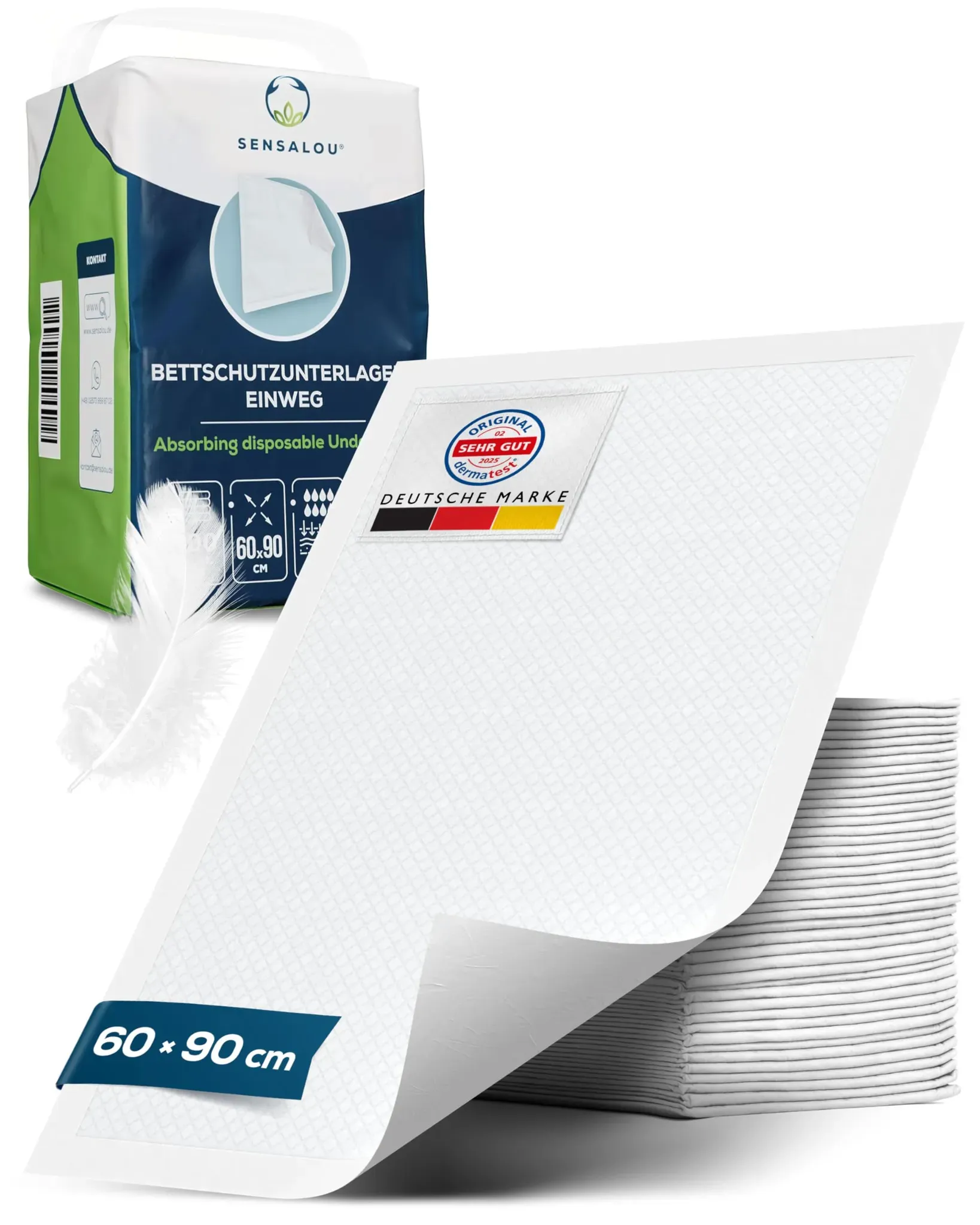Auf Lager Versand durch AmazonSensalou Einweg Bettunterlagen 60x90 cm ? 25 Stück ? wasserdichte Bettschutzunterlagen für Erwachsene, Baby, Pflege, Tiere ? Saugstarke Inkontinenzunterlagen, Krankenunterlagen, Einmalauflagen
