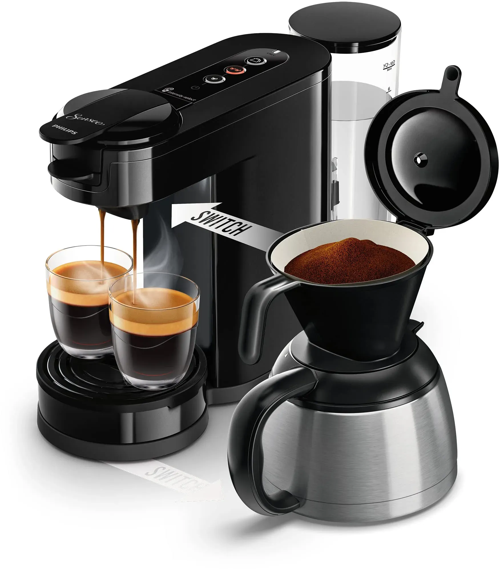 lieferbar-in 1-2 Werktagen bei dirPhilips Senseo Kaffeepadmaschine Switch HD6592/64, 2-in-1 Pad und Filterkaffee, 1l Kaffeekanne, aus 26% rec. Plastik schwarz