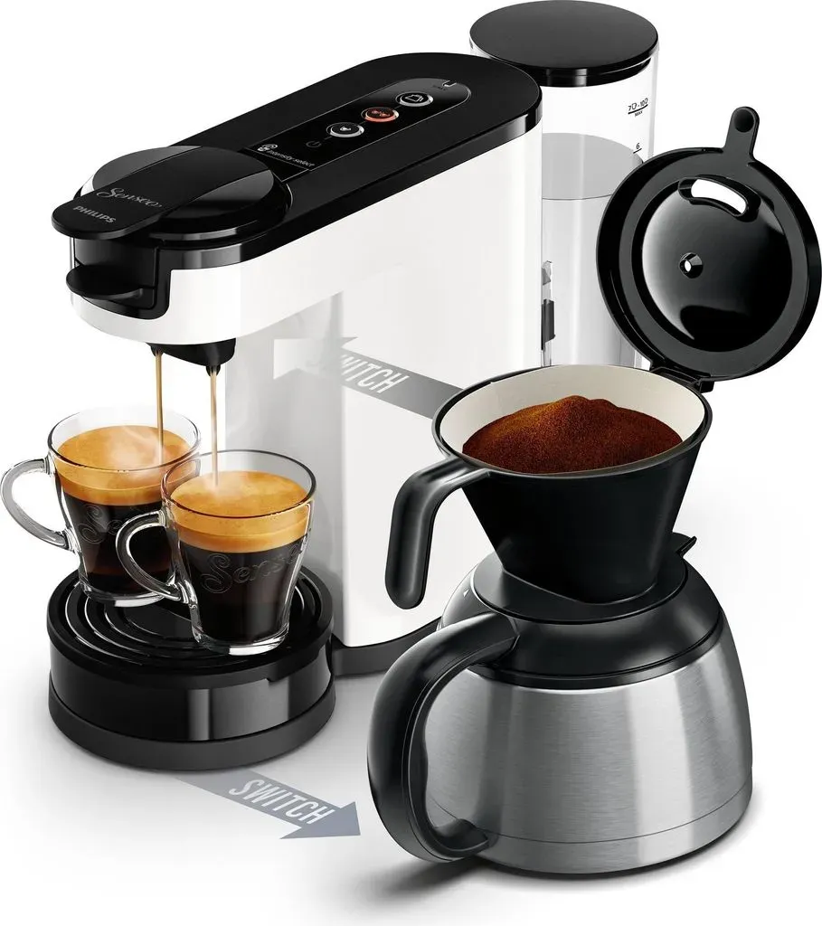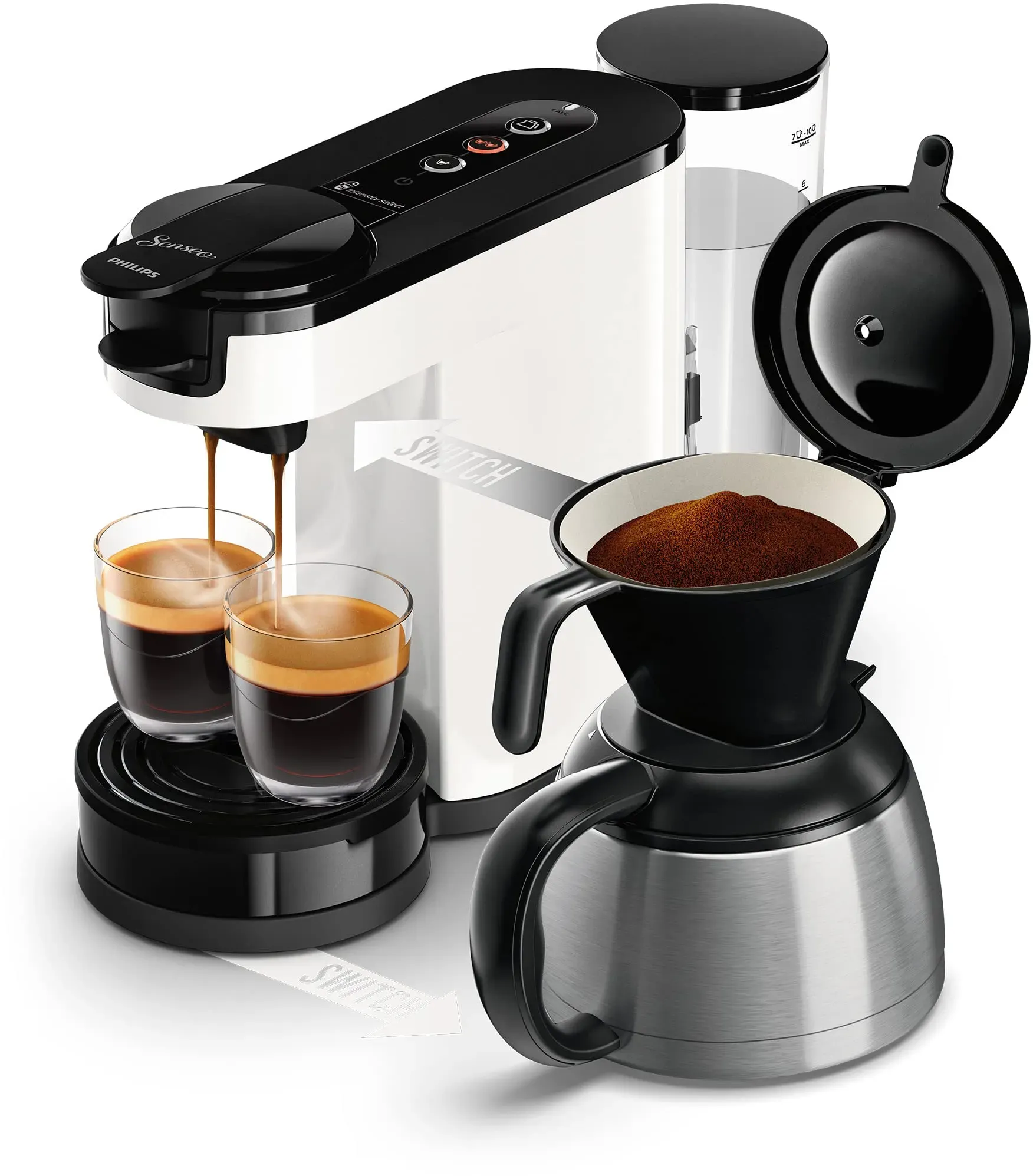Auf Lager Versand durch AmazonPhilips Senseo Switch Pad- und Filterkaffeemaschine, 2-in-1-Brühtechnologie, 1-Liter-Wasserbehälter, 7 Tassen in einem Durchgang, Farbe: Weiß (HD6592/04)
