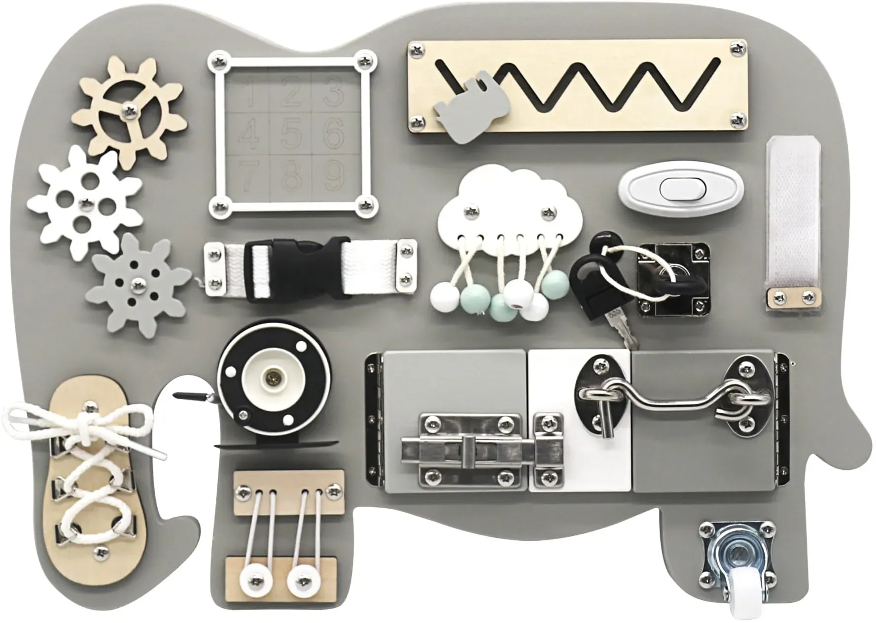 Verfügbarkeit: Auf Lager - Kategorie: Motorikspielzeug - Balinco - GTIN:4260629778414 - LERNEN DURCH SPIELEN: Das Montessori-Motorikboard fördert Feinmotorik, Konzentration und Hand-Augen-Koordination perfekt als sinnvolles Spielzeug 13 INTERAKTIVE ELEMENTE: Mit Zahlenfeld, Perlenlabyrinth, Rädern, Verschlüssen und vieles mehr bietet das Holzspielzeug abwechslungsreiche Spielmöglichkeiten und regt Fantasie und Neugierde an HOCHWERTIGES HOLZSPIELZEUG: Das Activity Board in Bärenform ist aus massivem Holz gefertigt, robust und langlebig bemalt mit umweltfreundlichen Farben und geprüft nach geltenden Sicherheitsstandards FüR UNTERWEGS & ZUHAUSE: Das kompakte Busy Board passt ideal ins Zzimmer und lässt sich dank handlicher Größe von 39x30 cm auch leicht auf Reisen oder zu Besuch bei Freunden mitnehmen PERFEKTES GESCHENK: Das pädagogisch wertvolle Aktivitätsbrett begeistert Eltern wie Sprösslinge gleichermaßen durch dessen interaktive Funktionen ein liebevolles Geschenk für Geburtstag, Weihnachten oder andere festliche Anlässe, Hersteller: Balinco - 49,90 Euro bei Amazon Marketplace Toys - gefunden von billiger.de Dieses Montessori Busy Board aus Holz bietet 15 verschiedene Schaltelemente und ist eine umfassende Option für die sensorische Entwicklung. ![]() ![]() Montessori Spielzeug - Busy Board eBay Activity Board Holz Kinder Sensorik 15 Schalt...