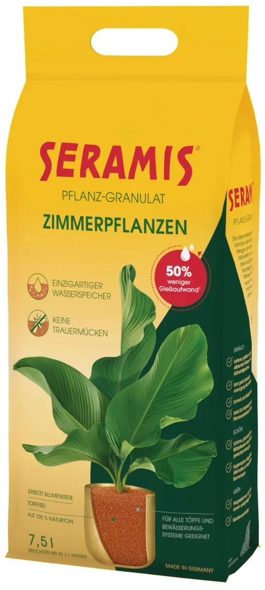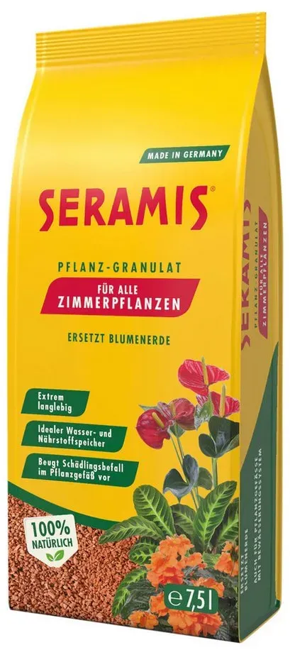 12 Händlerangebote bei billiger.de - Kategorie: Blumenerde - Seramis - Prachtvolle Pflanzen mit System Das SERAMIS Pflanz-Granulat für Zimmerpflanzen kann große Wassermengen aufnehmen, speichern und wieder abgeben. Die kleinen, feinporigen Tonkörnchen saugen das Wasser wie ein Schwamm auf. Die Wurzeln der Pflanze wachsen in die feinporige Oberfläche der Tonkörnchen hinein und werden so nach Bedarf mit Wasser, Nährstoffen und lebensnotwendigem Sauerstoff versorgt. Des Weiteren ist das Seramis Pflanz-Granulat leicht und altert und verdichtet nicht. Somit bleibt eine lockere, gut durchlüftete Struktur erhalten. Das Pflanz-Granulat für Zimmerpflanzen beugt Trauermücken-Befall vor. Das Umtopfen aus herkömmlicher Erde ist unabhängig von Alter und Größe der Pflanze jederzeit möglich. Das Pflanz-Granulat für Zimmerpflanzen ist Bestandteil des SERAMIS Systems. Um Ihre Pflanzen bestens zu versorgen, empfehlen wir zusätzlich den Einsatz unserer SERAMIS Vitalnahrung sowie des SERAMIS Gießanzeigers.Ersetzt BlumenerdeWasserspeicherNährstoffspeicherExtrem langlebigHohe Wasser- und NährstoffspeicherungBeugt Schädlingsbefall im Pflanzgefäß vor, z.B. TrauermückenAusgezeichnete SauerstoffversorgungSauber, sicher und hygienischAltert und verdichtet nichtGanzjähriges Umtopfen möglichKeine Verdichtung, sehr gute WiederbenetzbarkeitFür Allergiker geeignet - GTIN:4260376730017 ![]() ![]() Seramis Pflanz-Granulat - für Zimmerpflanzen eBay 7,5 L Bodenzusatz